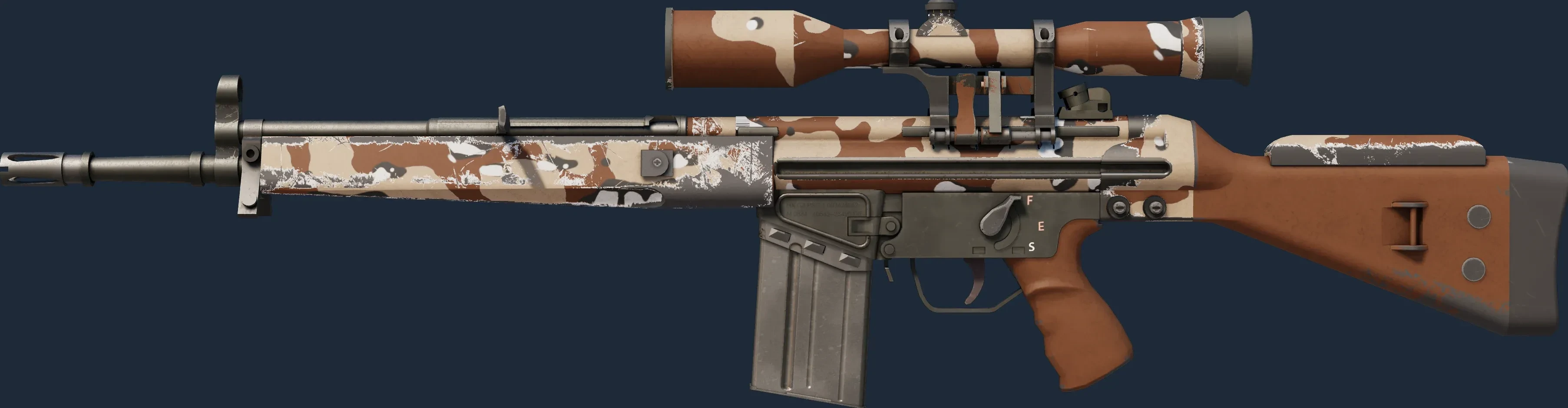 The G3SG1 | Desert Storm is a Covert grade skin for the G3SG1 in Counter-Strike 2. It features a Custom Paint Job finish and was designed by Valve.