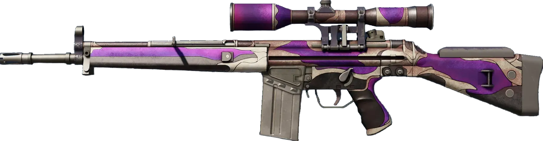 The pricy G3SG1 lowers movement speed considerably but compensates with a higher rate of fire than other sniper rifles. It has been painted with purple and silver metallic paints. _A plan is a list of things that don't happen_