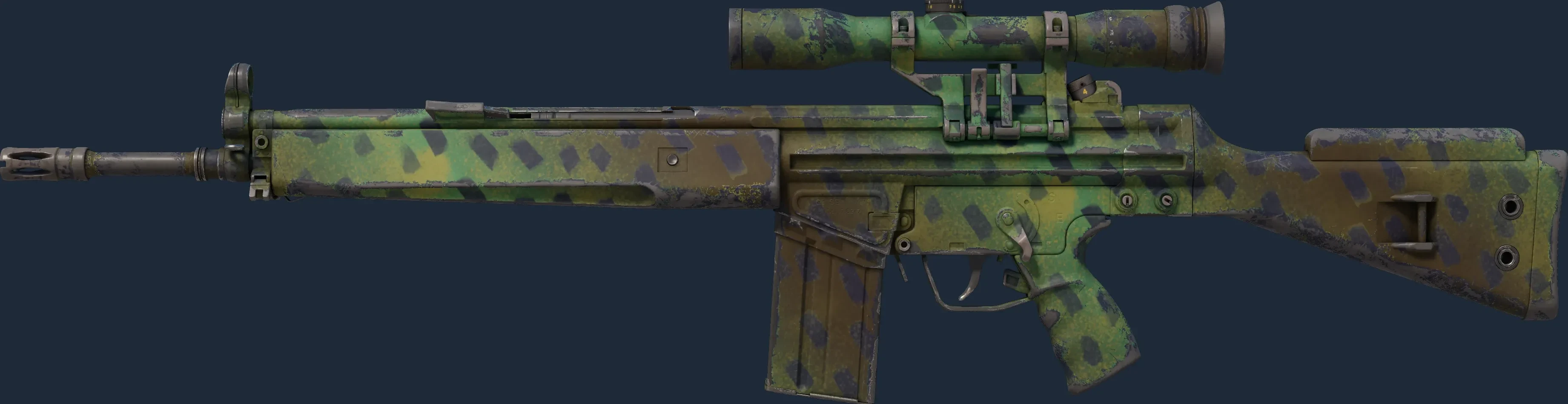 The G3SG1 | Jungle Dashed is a Covert grade skin for the G3SG1 in Counter-Strike 2. It features a Custom Paint Job finish and was designed by Valve.