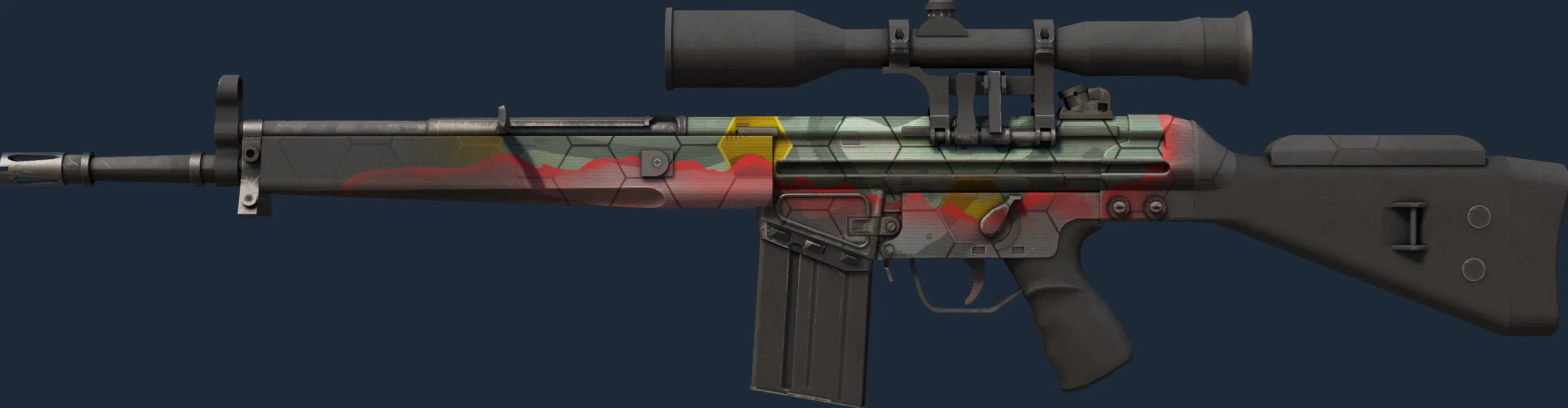 The G3SG1 | Keeping Tabs is a Covert grade skin for the G3SG1 in Counter-Strike 2. It features a Custom Paint Job finish and was designed by Debski.
