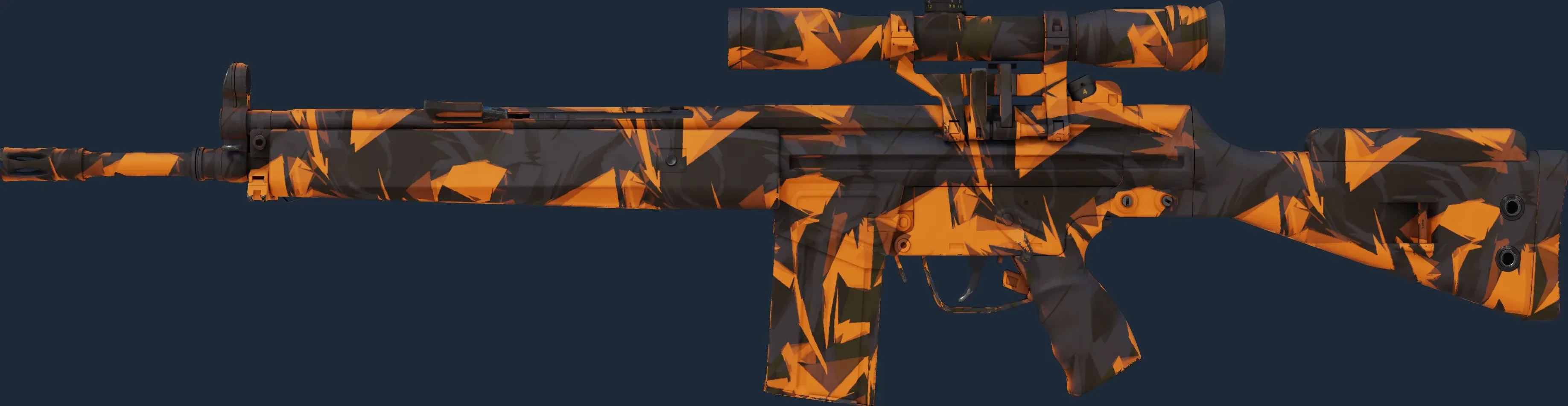 The G3SG1 | Orange Crash is a Covert grade skin for the G3SG1 in Counter-Strike 2. It features a Custom Paint Job finish and was designed by nozza.