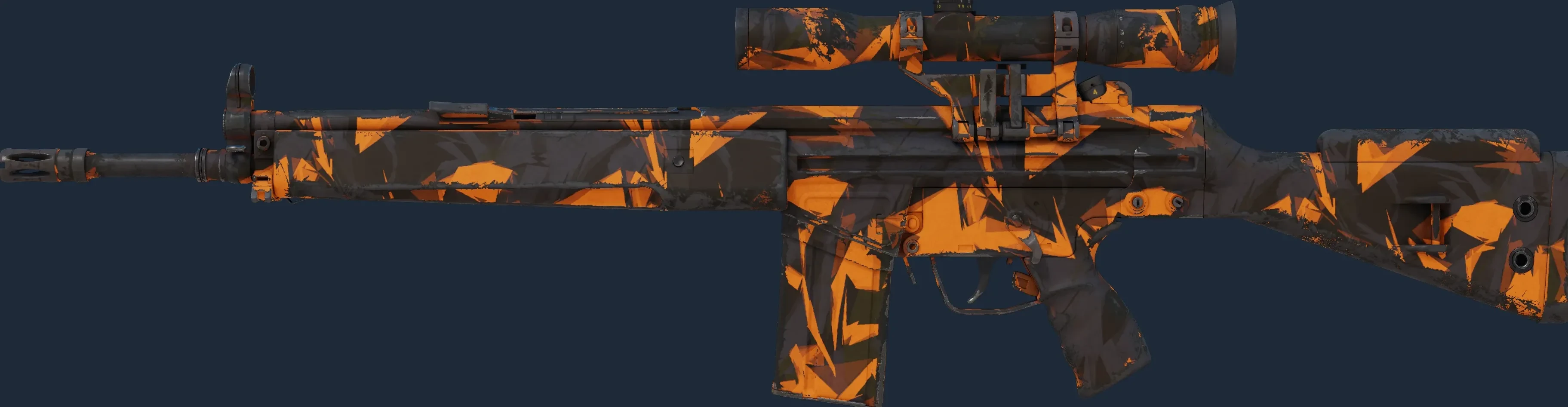 The G3SG1 | Orange Crash is a Covert grade skin for the G3SG1 in Counter-Strike 2. It features a Custom Paint Job finish and was designed by nozza.