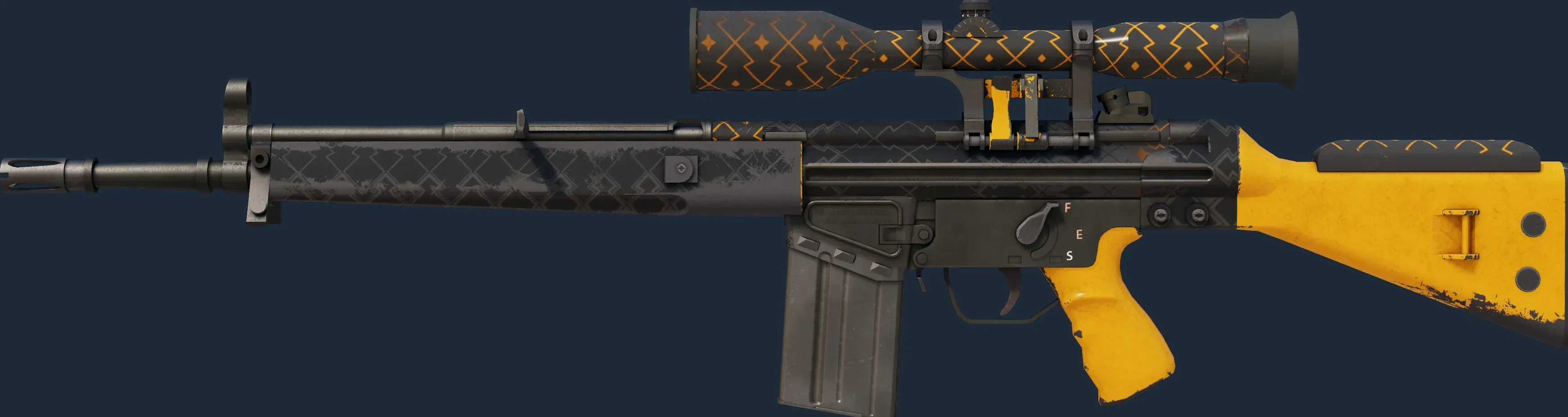 The G3SG1 | Orange Kimono is a Covert grade skin for the G3SG1 in Counter-Strike 2. It features a Custom Paint Job finish and was designed by Valve.