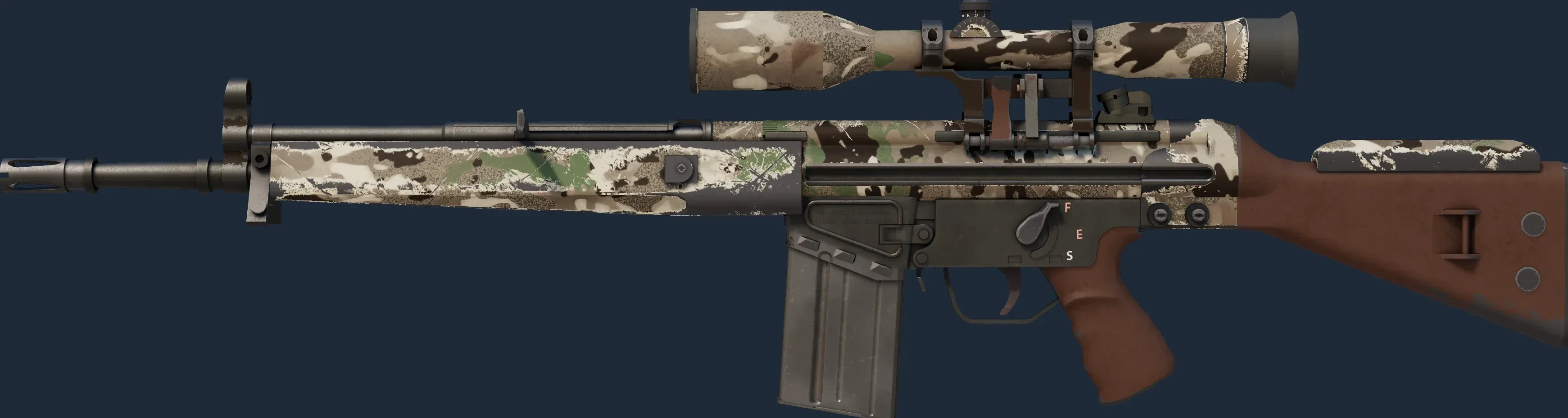 The G3SG1 | Varicamo is a Covert grade skin for the G3SG1 in Counter-Strike 2. It features a Custom Paint Job finish and was designed by Valve.