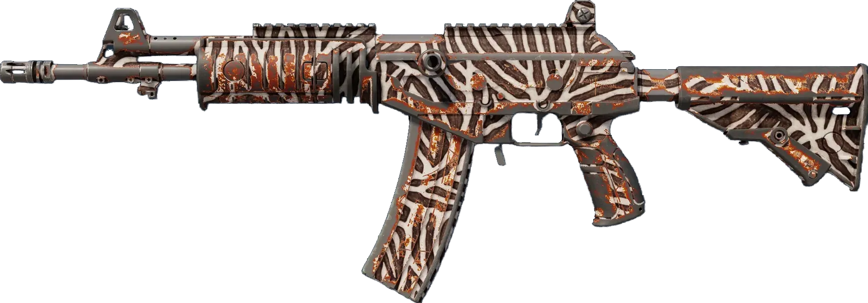 A less expensive option among the terrorist-exclusive assault rifles, the Galil AR is a serviceable weapon in medium to long-range combat. A rust-colored pattern has been spray painted over a white base. _Your personal battle cry_