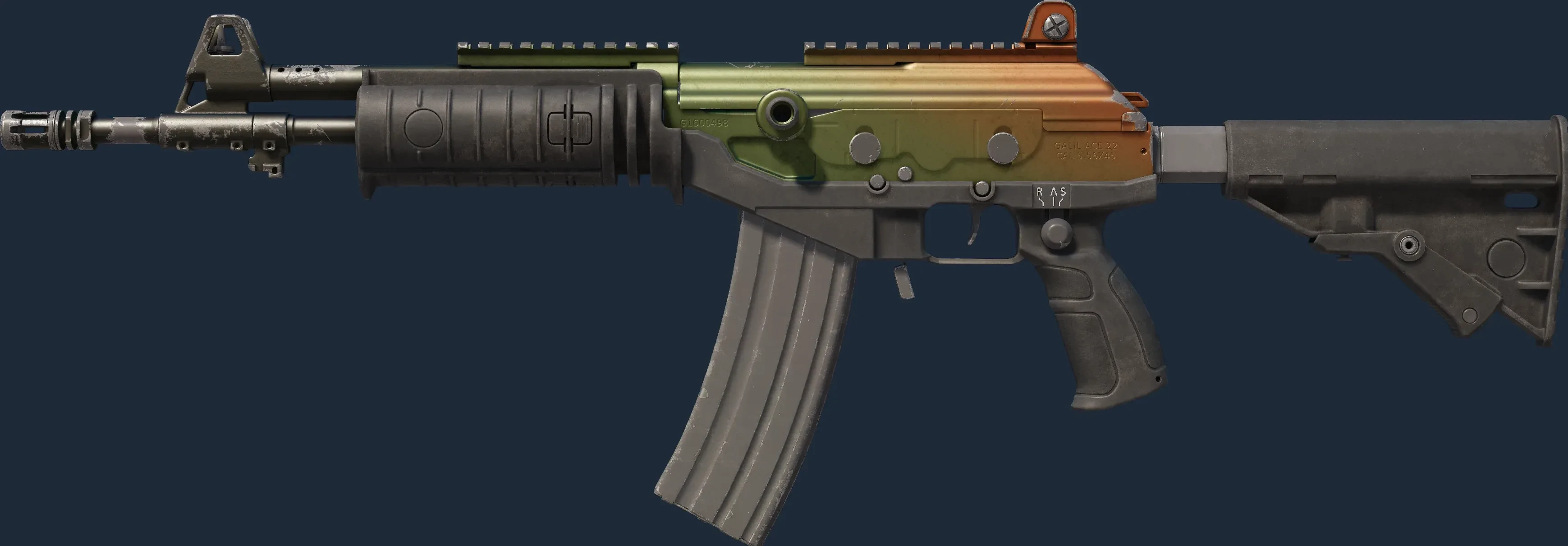The Galil AR | Amber Fade is a Covert grade skin for the Galil AR in Counter-Strike 2. It features a Custom Paint Job finish and was designed by Valve.