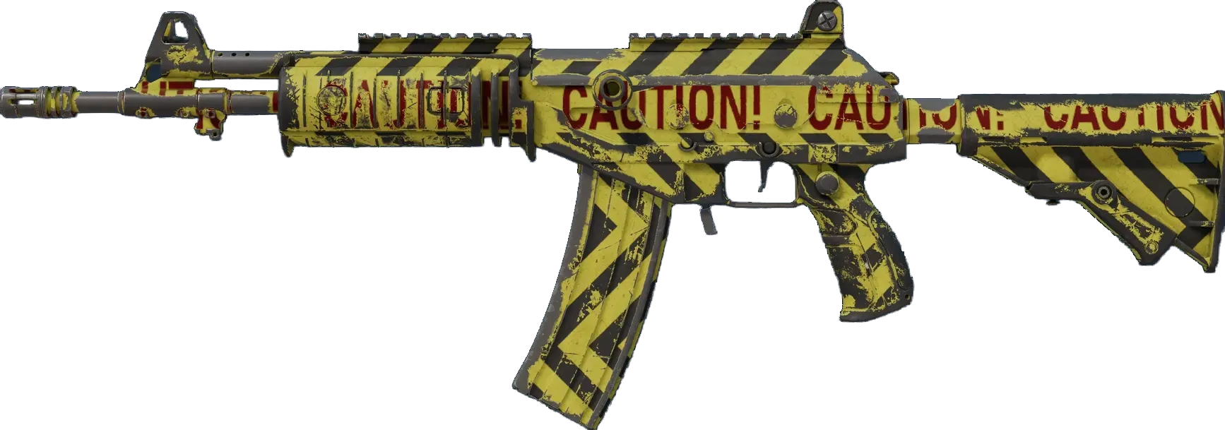 The float value of the Galil AR | Caution ranges from 0.00 to 1.00, which makes the skin available in all exteriors. For each exterior, there also exists a StatTrak version for the Caution.