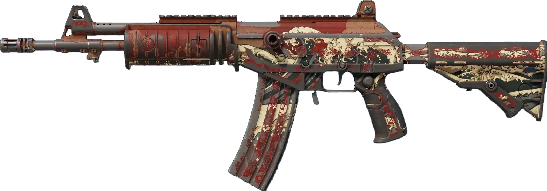 The Galil AR | Crimson Tsunami was first introduced to CS2 8 years ago, on Invalid Date. It was released as part of the Spectrum Case, alongside the "N/A" update. The skin was created by the community designer "N/A".