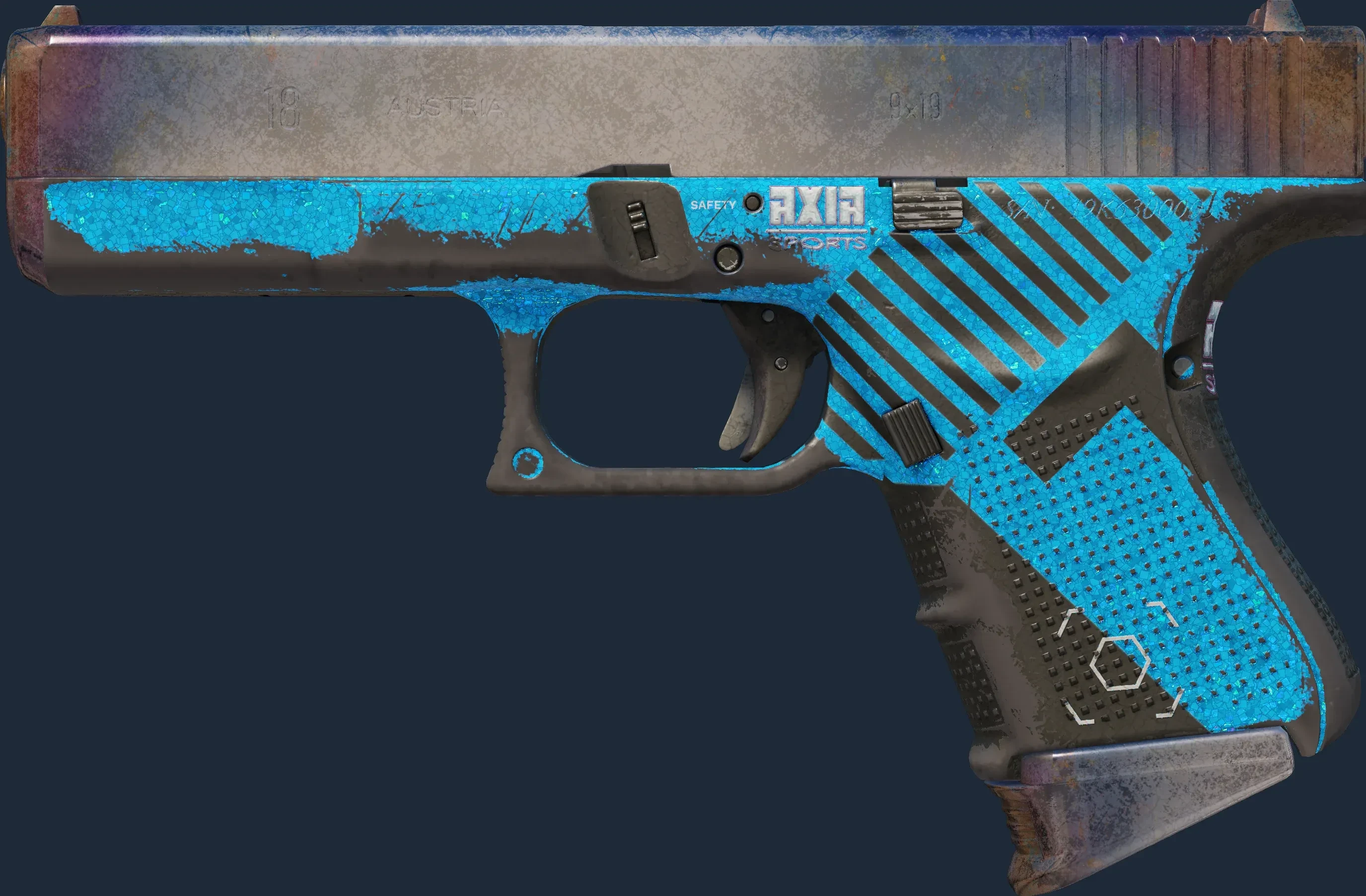 The Glock-18 | Axia is a Covert grade skin for the Glock-18 in Counter-Strike 2. It features a Custom Paint Job finish and was designed by Valve.