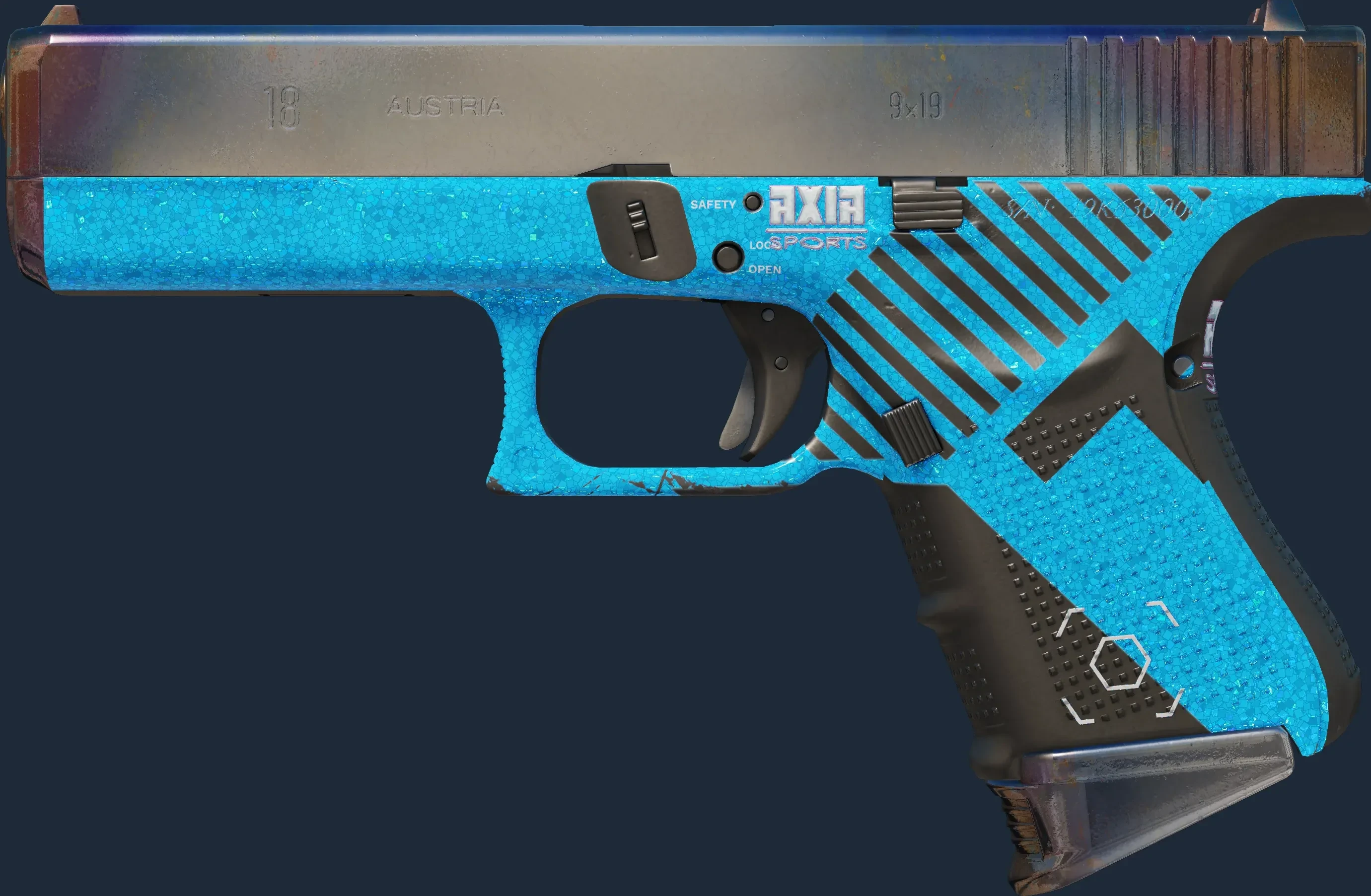 The Glock-18 | Axia is a Covert grade skin for the Glock-18 in Counter-Strike 2. It features a Custom Paint Job finish and was designed by Valve.