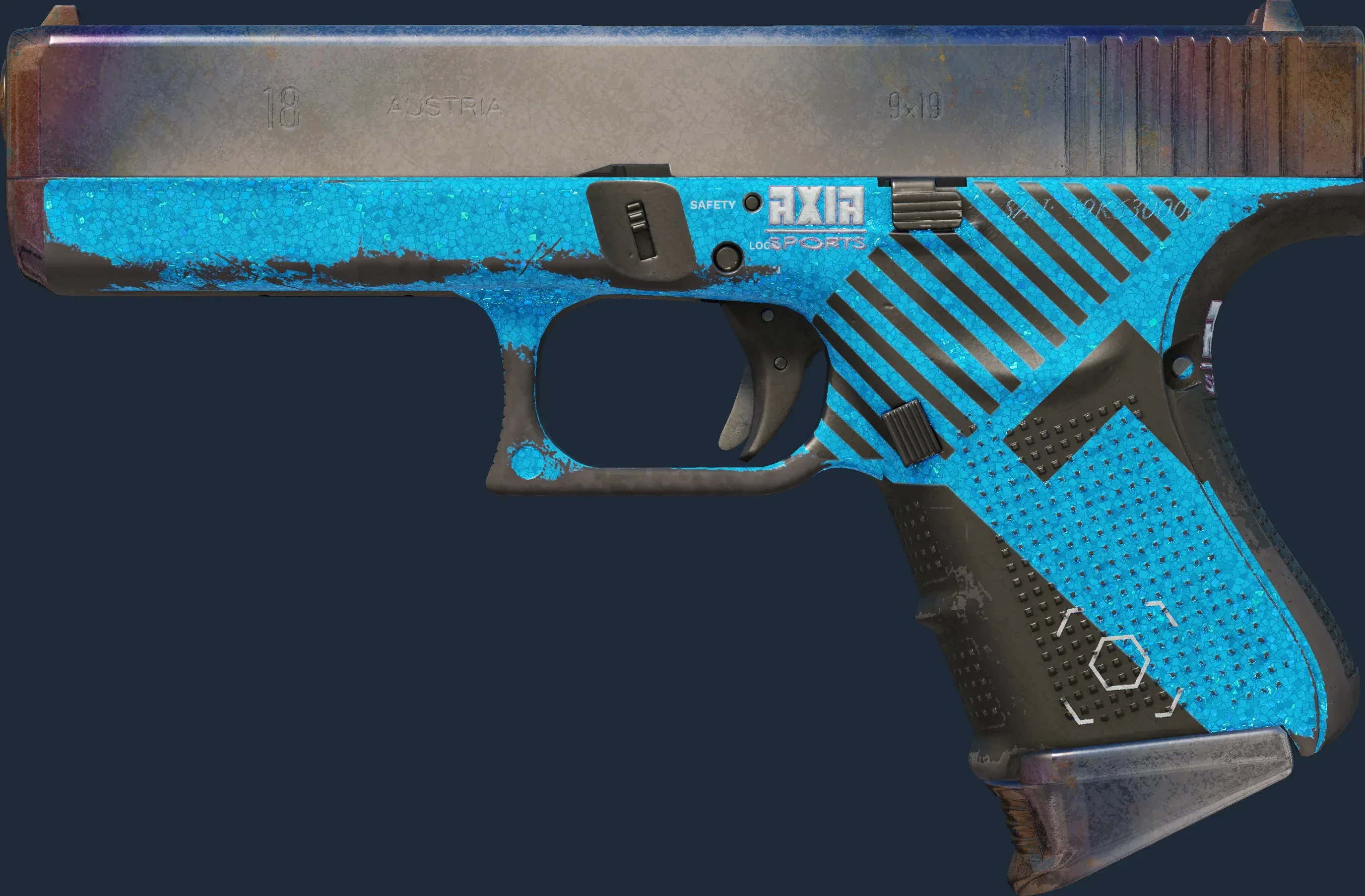 The Glock-18 | Axia is a Covert grade skin for the Glock-18 in Counter-Strike 2. It features a Custom Paint Job finish and was designed by Valve.