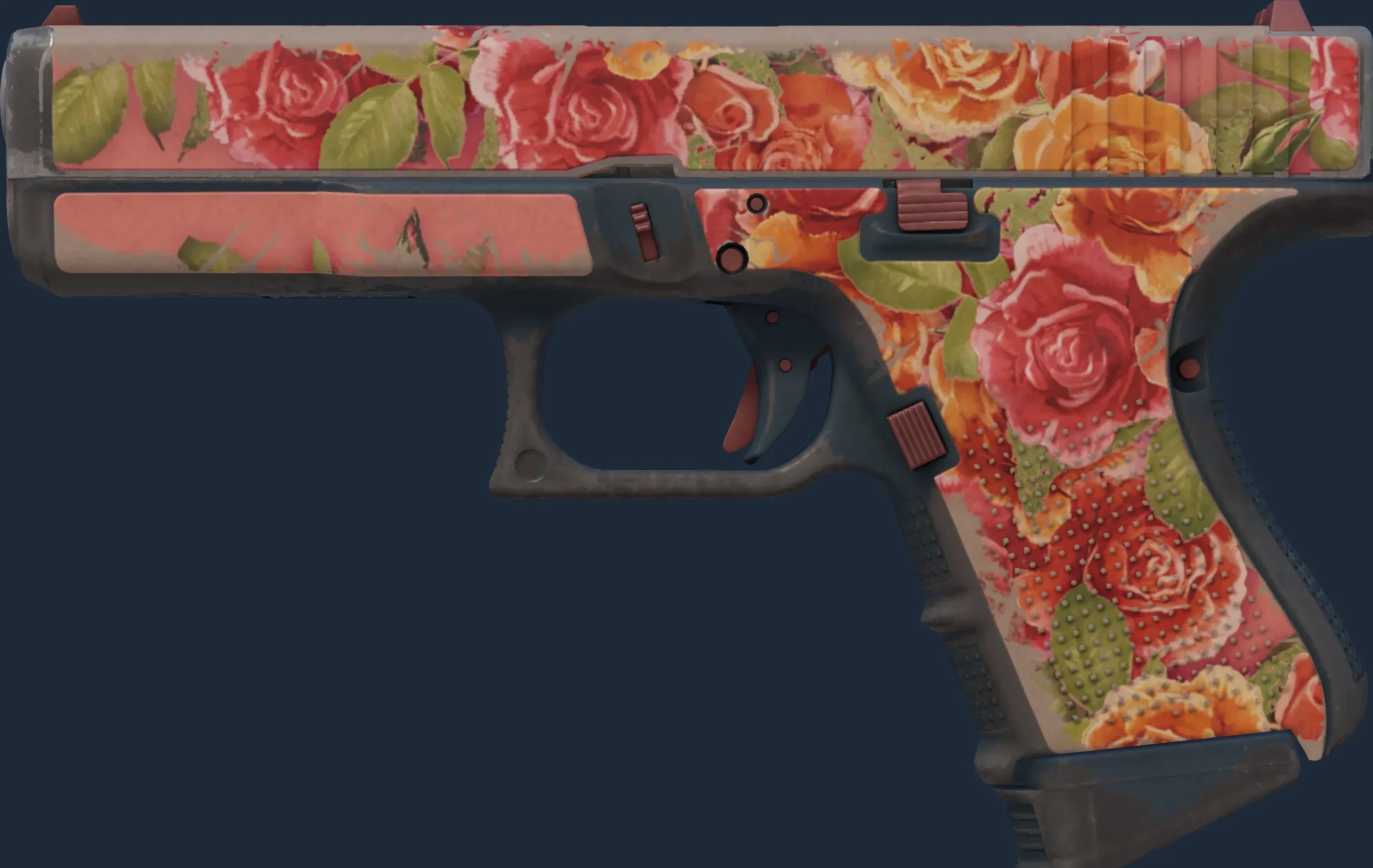 The Glock-18 | Coral Bloom is a Covert grade skin for the Glock-18 in Counter-Strike 2. It features a Custom Paint Job finish and was designed by Valve.
