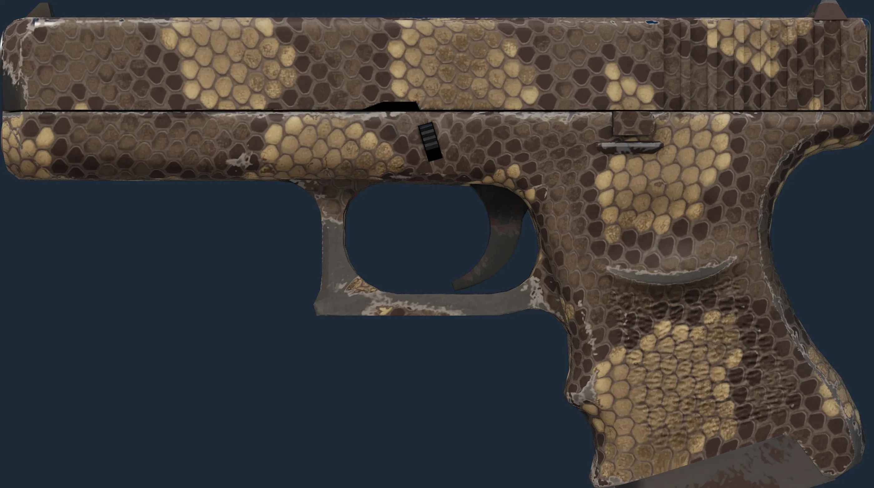 The Glock-18 | Death Rattle is a Covert grade skin for the Glock-18 in Counter-Strike 2. It features a Custom Paint Job finish and was designed by Valve.
