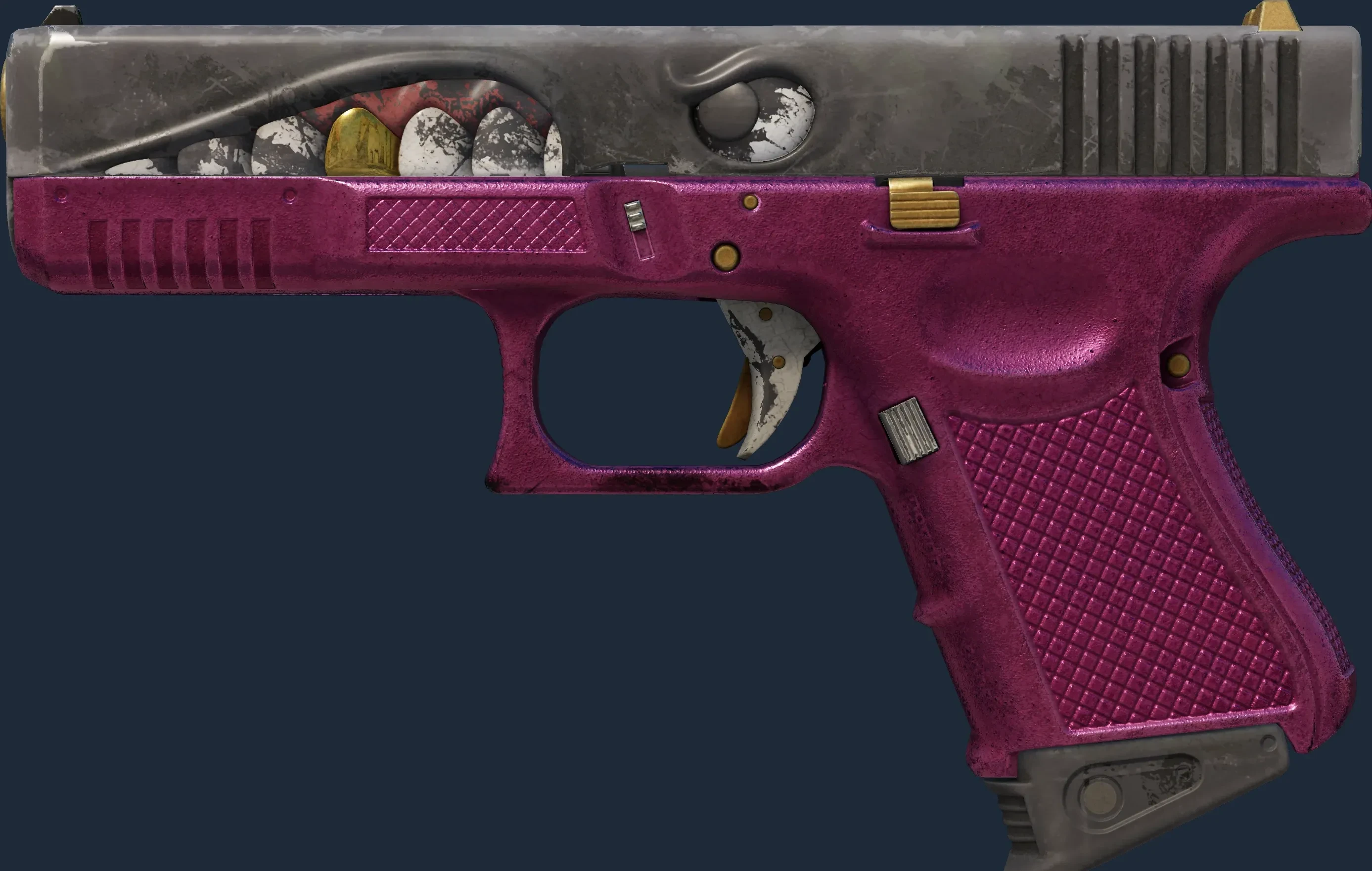 The Glock-18 | Gold Toof is a Covert grade skin for the Glock-18 in Counter-Strike 2. It features a Custom Paint Job finish and was designed by madpoly.