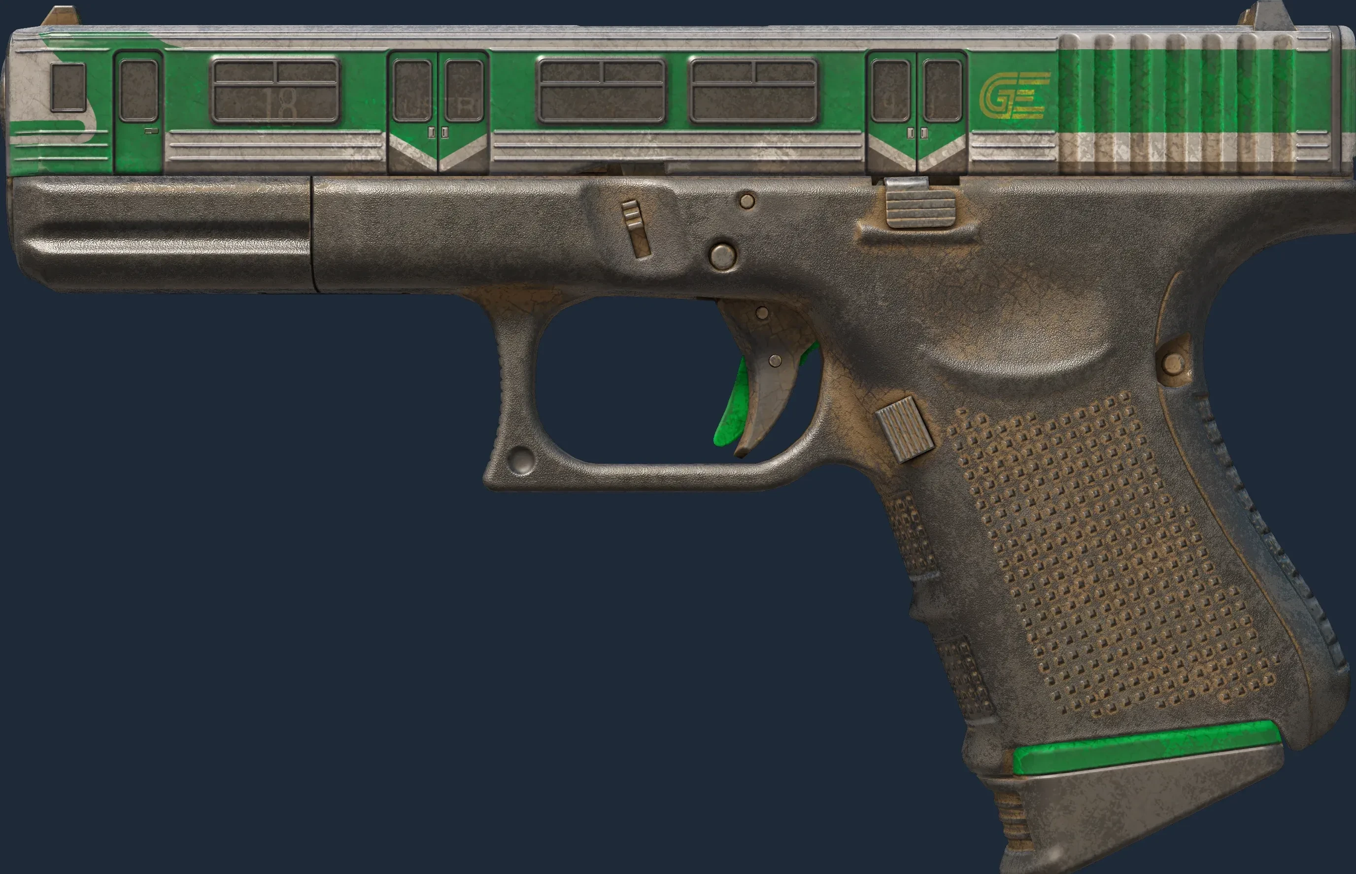 The Glock-18 | Green Line is a Covert grade skin for the Glock-18 in Counter-Strike 2. It features a Custom Paint Job finish and was designed by cimota.