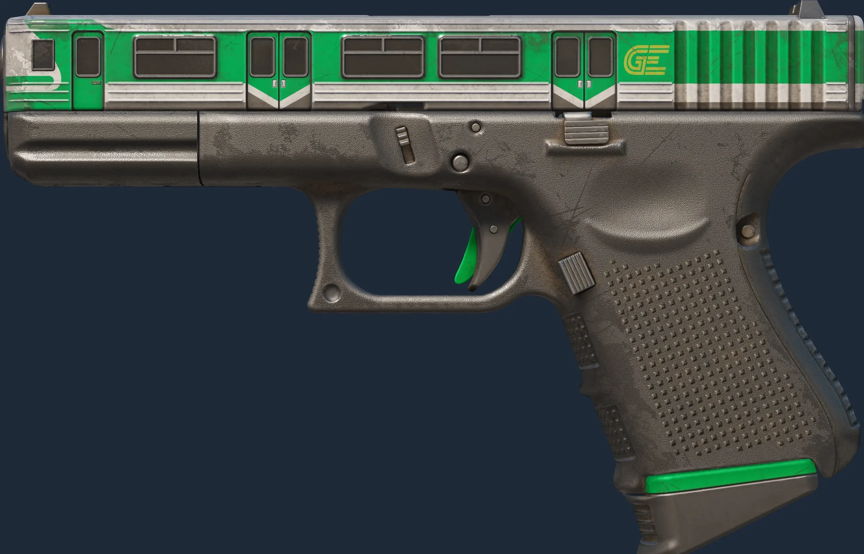 The Glock-18 | Green Line is a Covert grade skin for the Glock-18 in Counter-Strike 2. It features a Custom Paint Job finish and was designed by cimota.