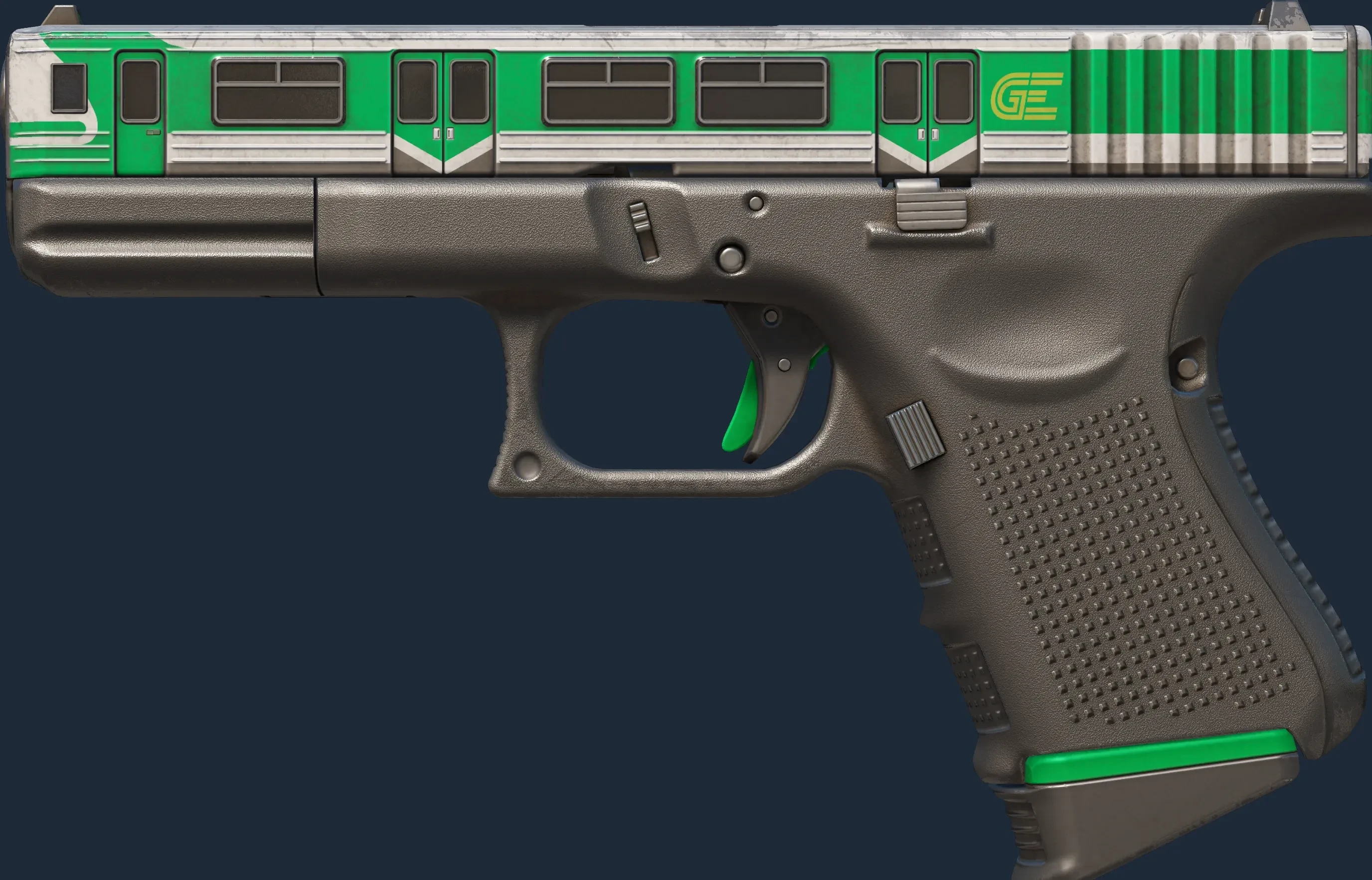The Glock-18 | Green Line is a Covert grade skin for the Glock-18 in Counter-Strike 2. It features a Custom Paint Job finish and was designed by cimota.