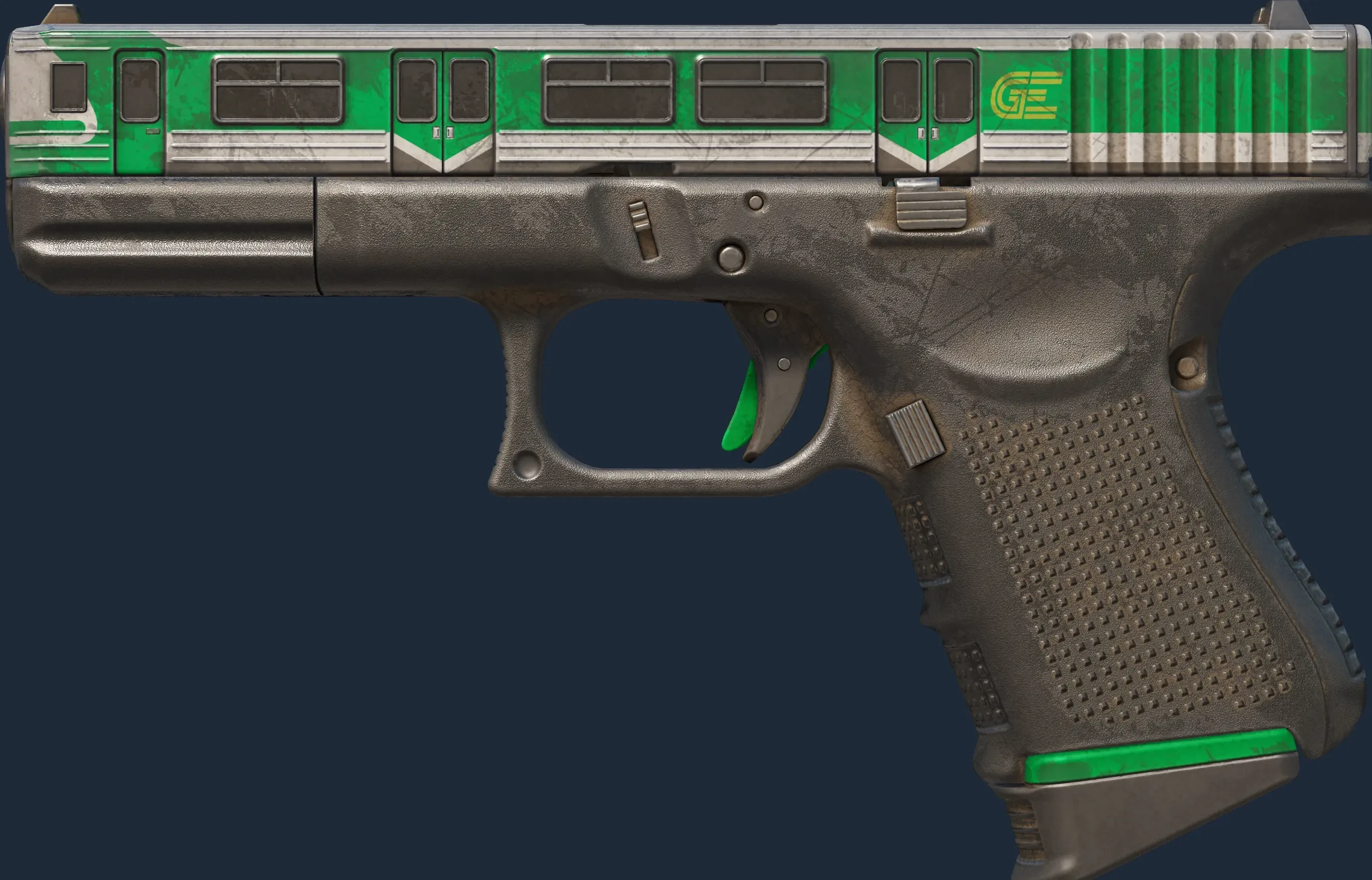 The Glock-18 | Green Line is a Covert grade skin for the Glock-18 in Counter-Strike 2. It features a Custom Paint Job finish and was designed by cimota.