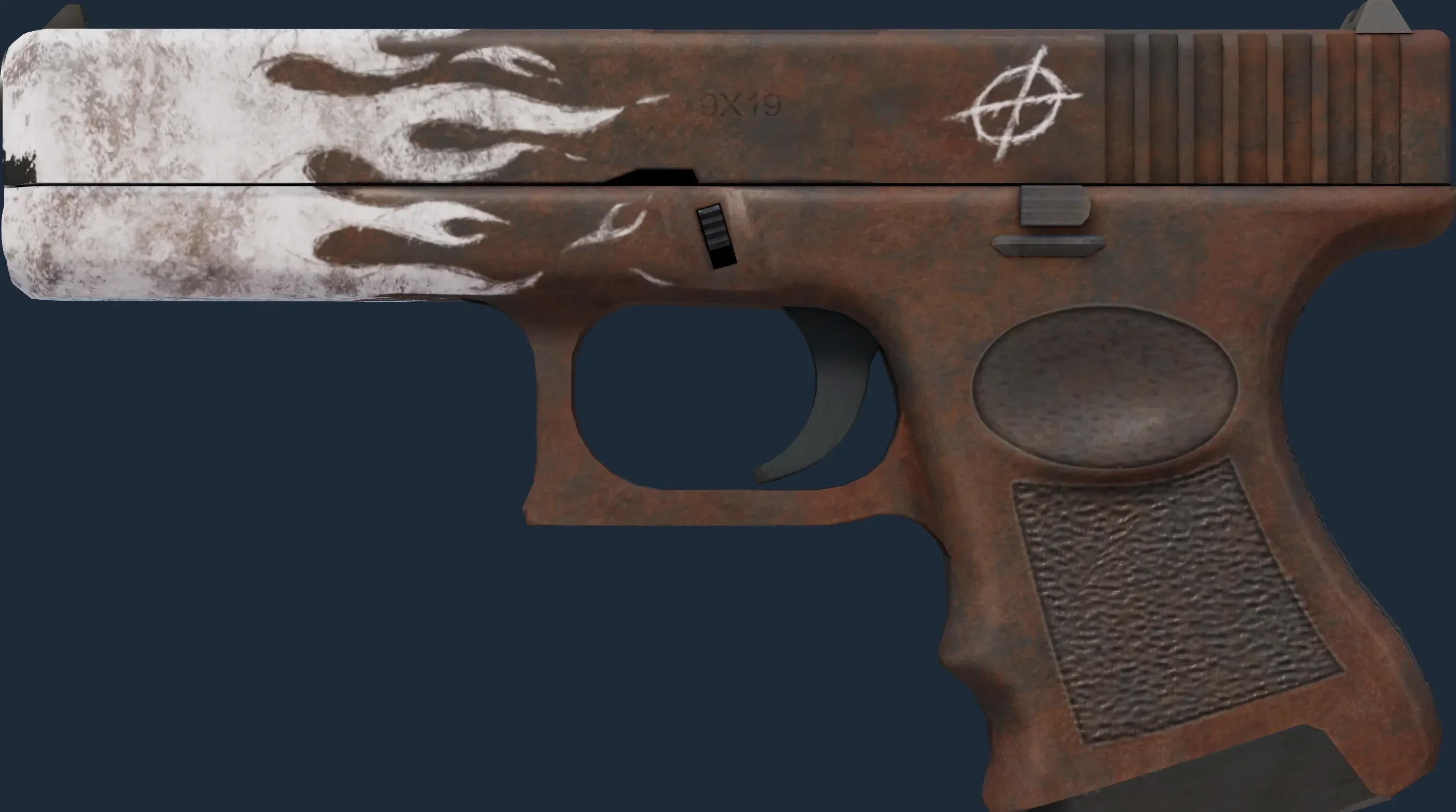 The Glock-18 | Oxide Blaze is a Covert grade skin for the Glock-18 in Counter-Strike 2. It features a Custom Paint Job finish and was designed by Hollandje.