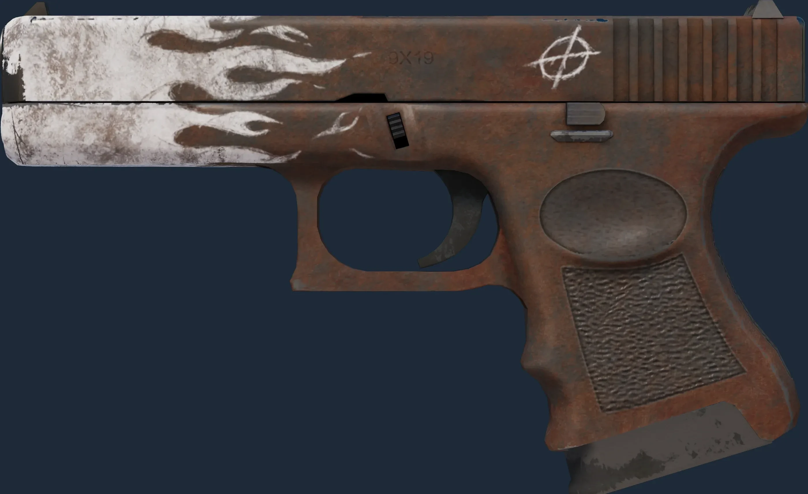 The Glock-18 | Oxide Blaze is a Covert grade skin for the Glock-18 in Counter-Strike 2. It features a Custom Paint Job finish and was designed by Hollandje.