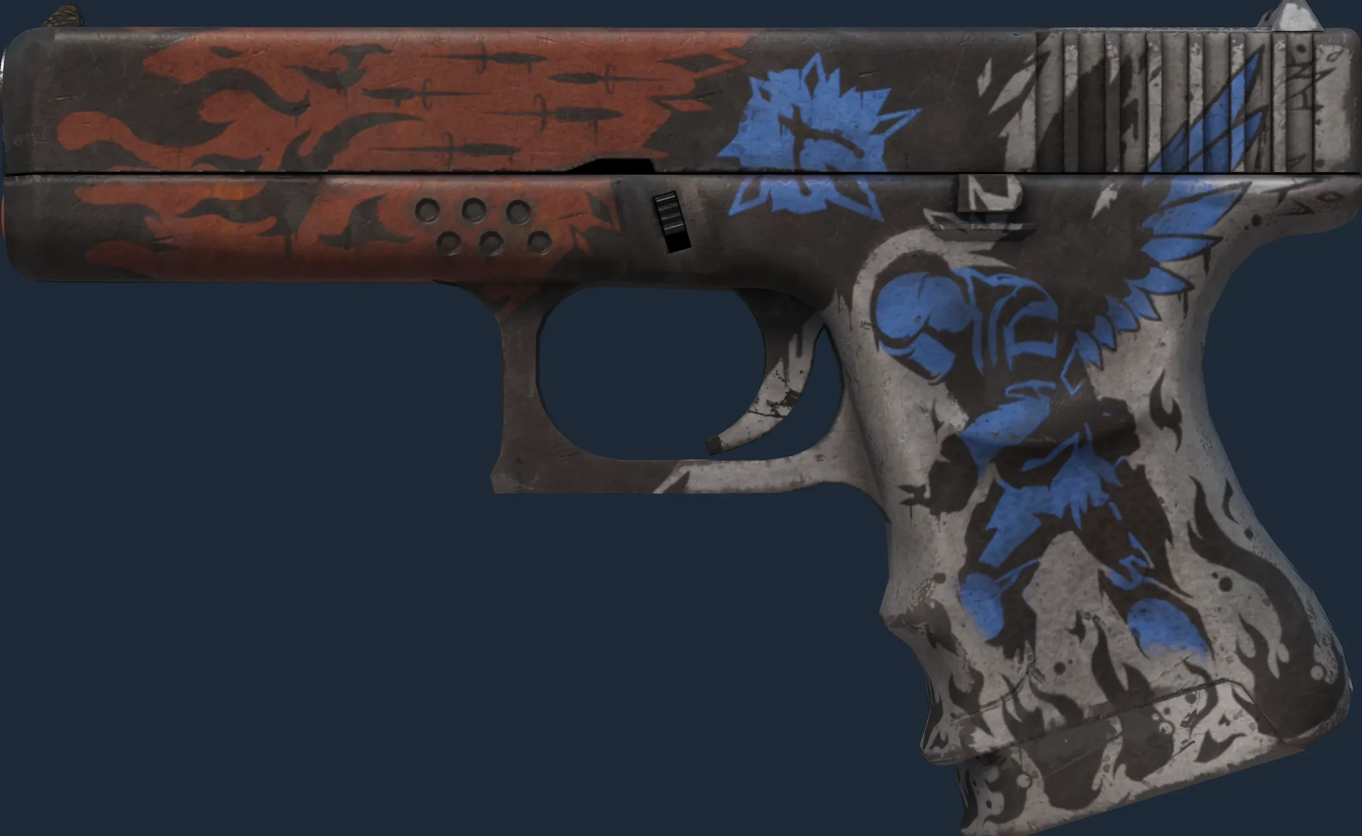 The Glock-18 | Sacrifice is a Covert grade skin for the Glock-18 in Counter-Strike 2. It features a Custom Paint Job finish and was designed by S1lent.