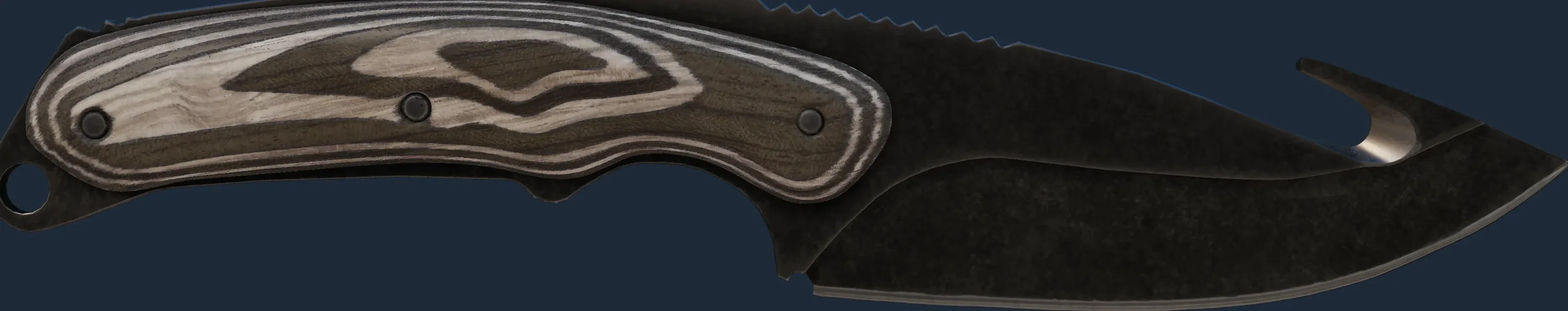 The Gut Knife | Black Laminate is a Covert grade skin for the Gut Knife in Counter-Strike 2. It features a Custom Paint Job finish and was designed by Valve.