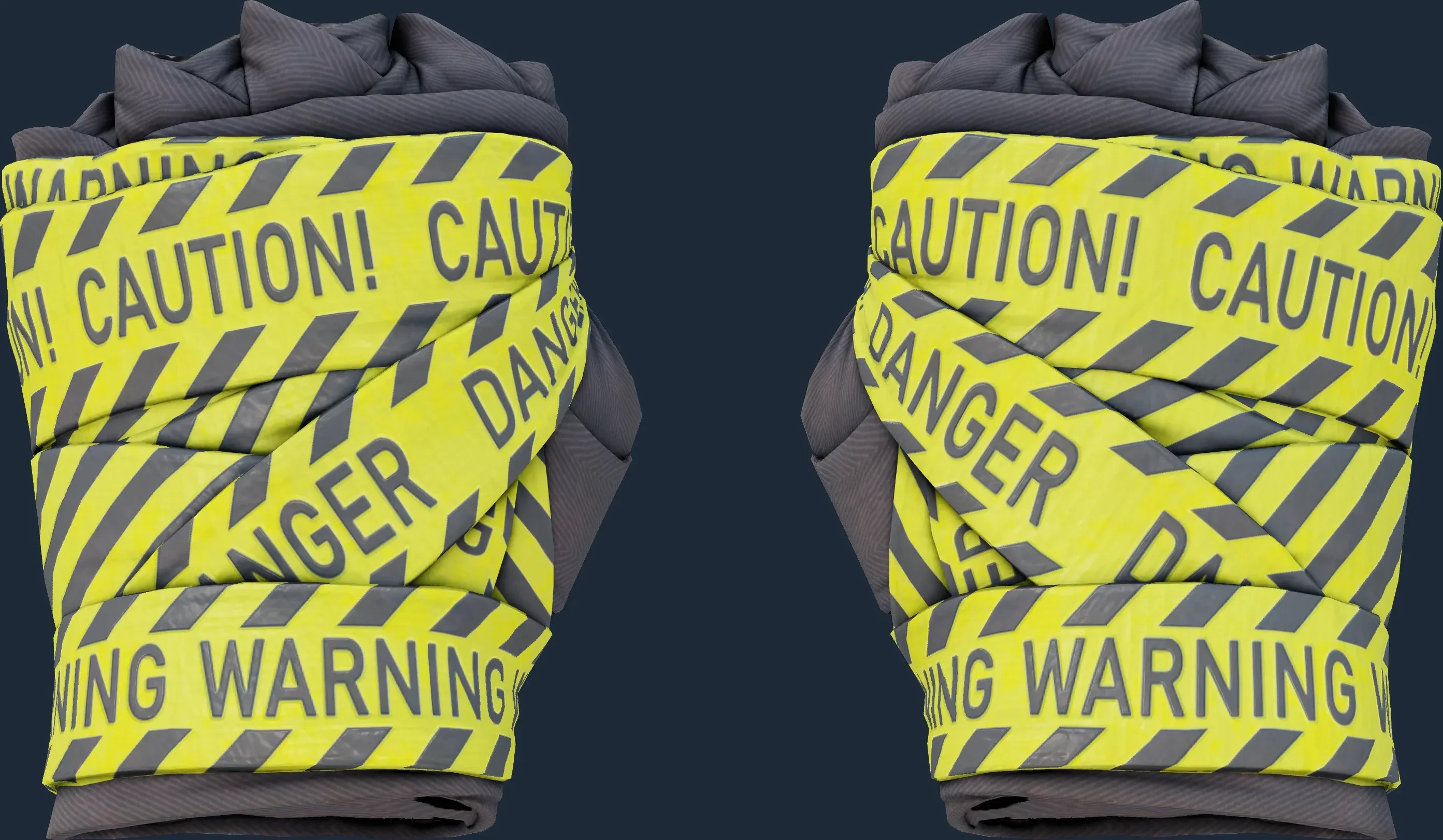 The ★ Hand Wraps | CAUTION! is one of 72 other Gloves skins. The rarity of the skin is Extraordinary, which makes the CAUTION! an ultra rare drop with an estimated drop chance of just 0.26%.