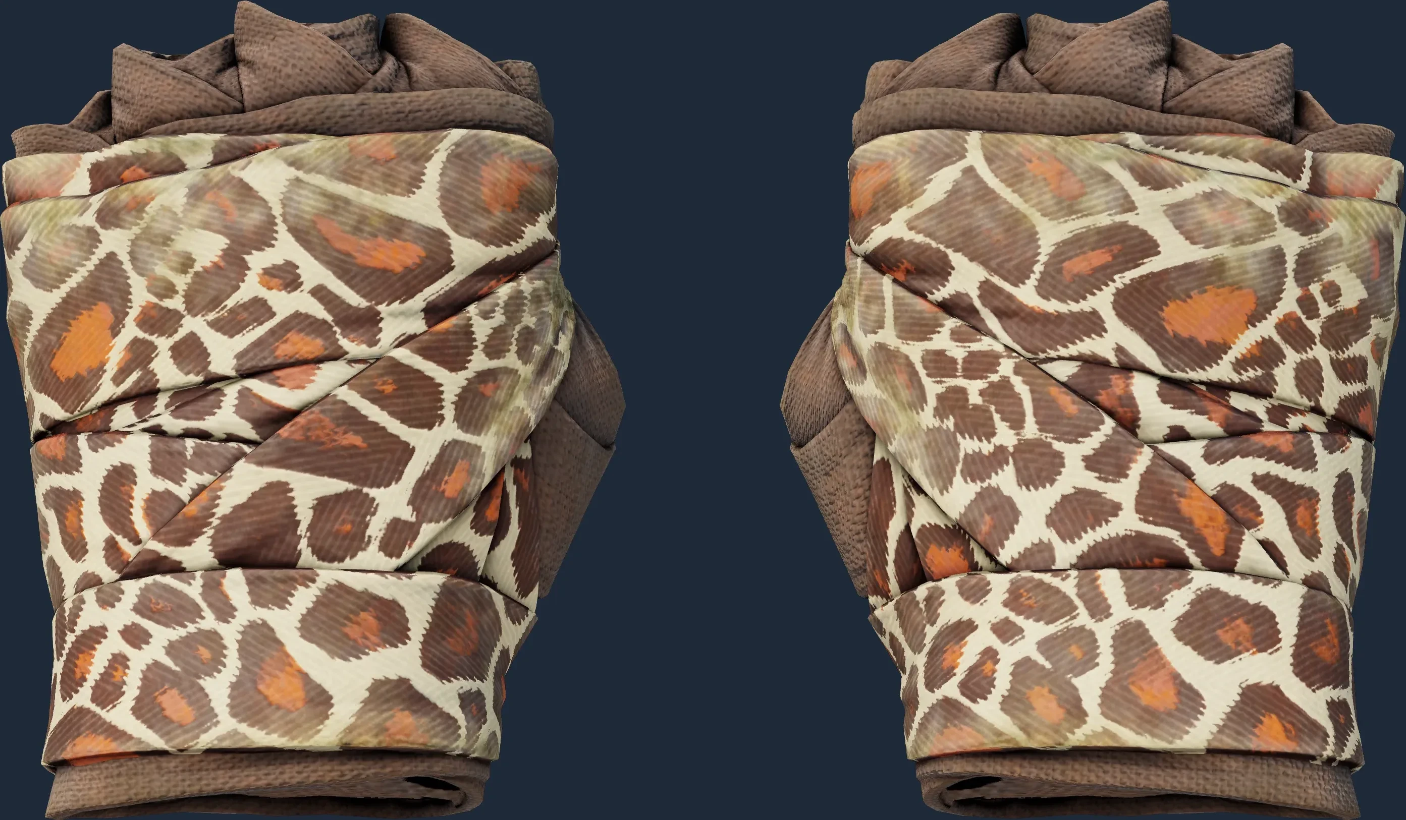The Giraffe has a float value range from 0.00 to 1.00, making it available in 5 wear conditions: Factory New, Minimal Wear, Field-Tested, Well-Worn, Battle-Scarred.