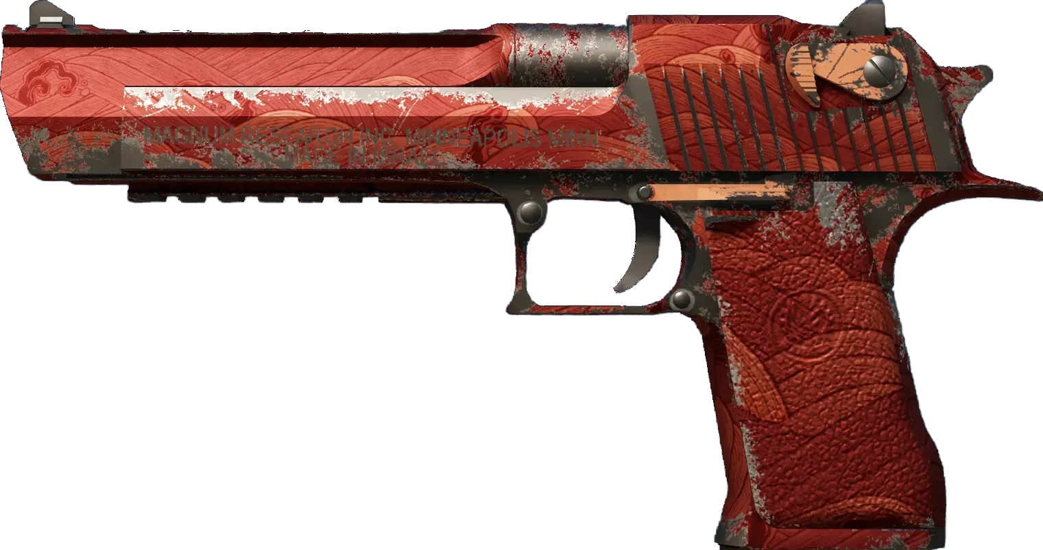 As expensive as it is powerful, the pistols/desert-eagle" class="text-orange-500 hover:underline underline-offset-4 decoration-orange-500/30">Desert Eagle is an iconic pistol that is difficult to master but surprisingly accurate at long range. It has been painted with a hydrographic of a stormy sea over a red metallic base coat. _You think it's the same, but look again... subtlety makes all the difference_