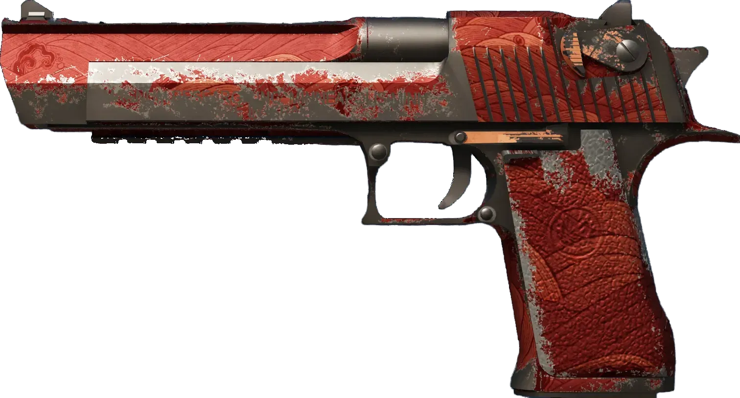 As expensive as it is powerful, the pistols/desert-eagle" class="text-orange-500 hover:underline underline-offset-4 decoration-orange-500/30">Desert Eagle is an iconic pistol that is difficult to master but surprisingly accurate at long range. It has been painted with a hydrographic of a stormy sea over a red metallic base coat. _You think it's the same, but look again... subtlety makes all the difference_
