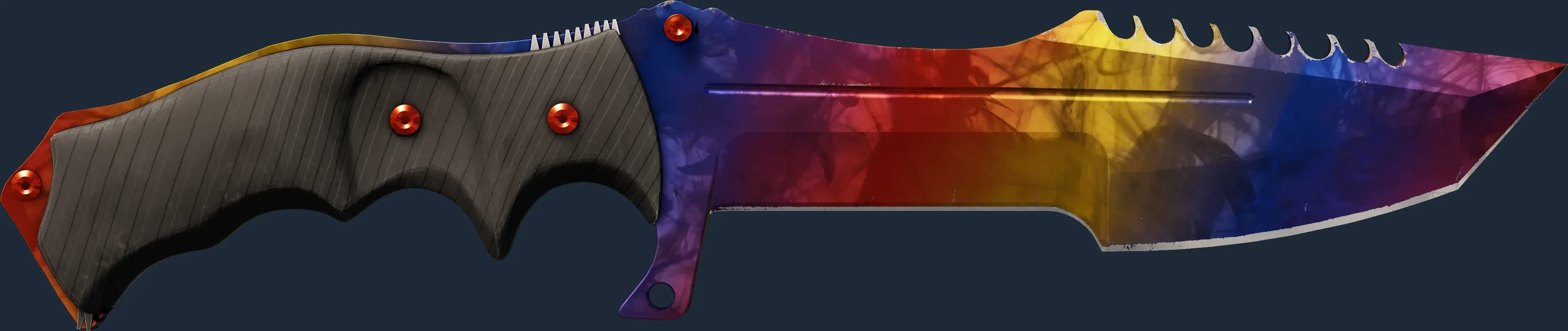 The Huntsman Knife | Marble Fade is a Covert grade skin for the Huntsman Knife in Counter-Strike 2. It features a Custom Paint Job finish and was designed by Valve.