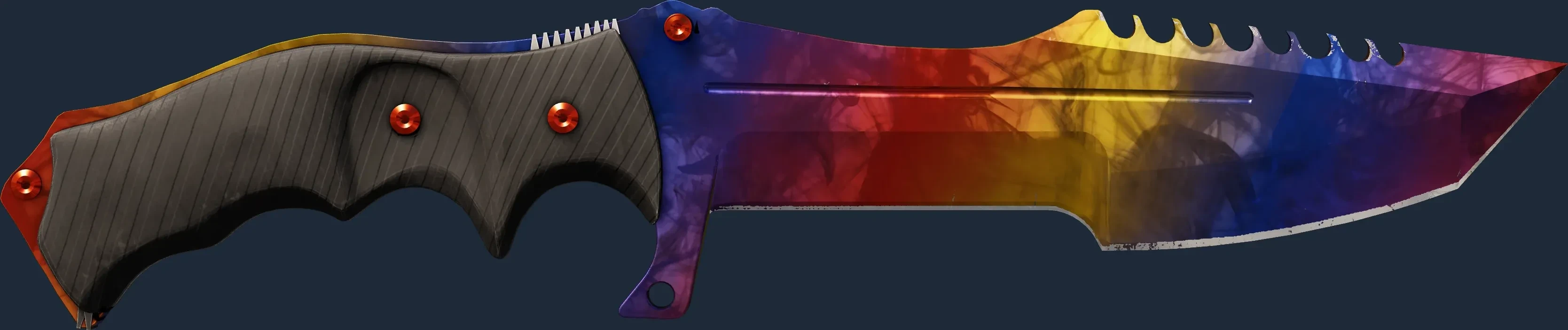 The Huntsman Knife | Marble Fade is a Covert grade skin for the Huntsman Knife in Counter-Strike 2. It features a Custom Paint Job finish and was designed by Valve.