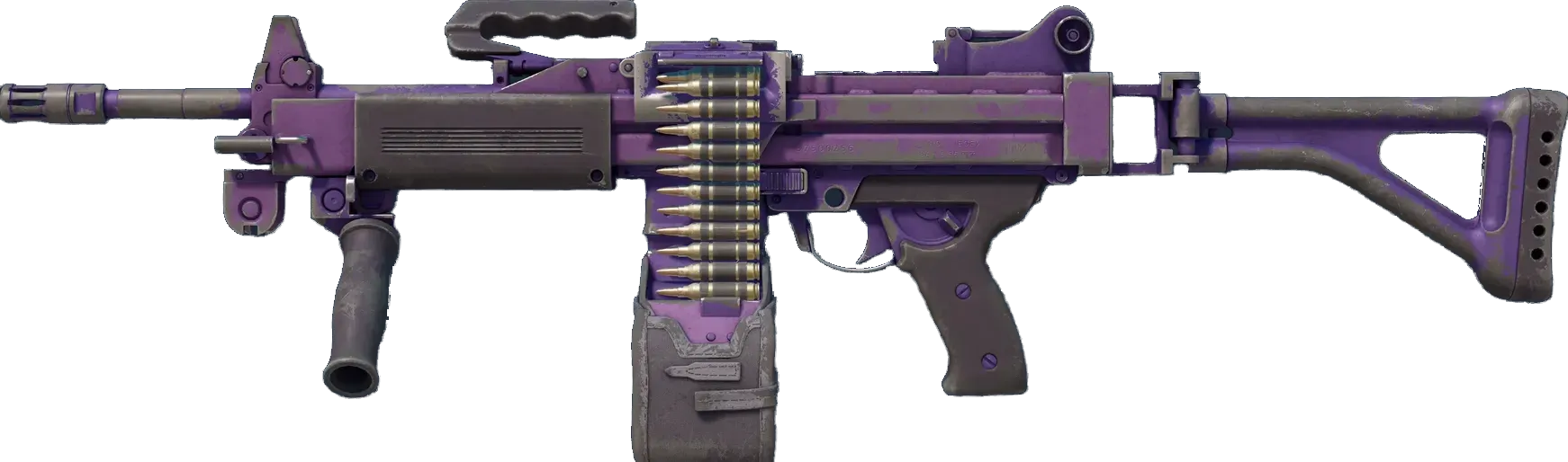 The Negev is a beast that can keep the enemy at bay with its pin-point supressive fire, provided you have the luxury of time to gain control over it. It has been painted using different shades of purple. _Purple people deleter_