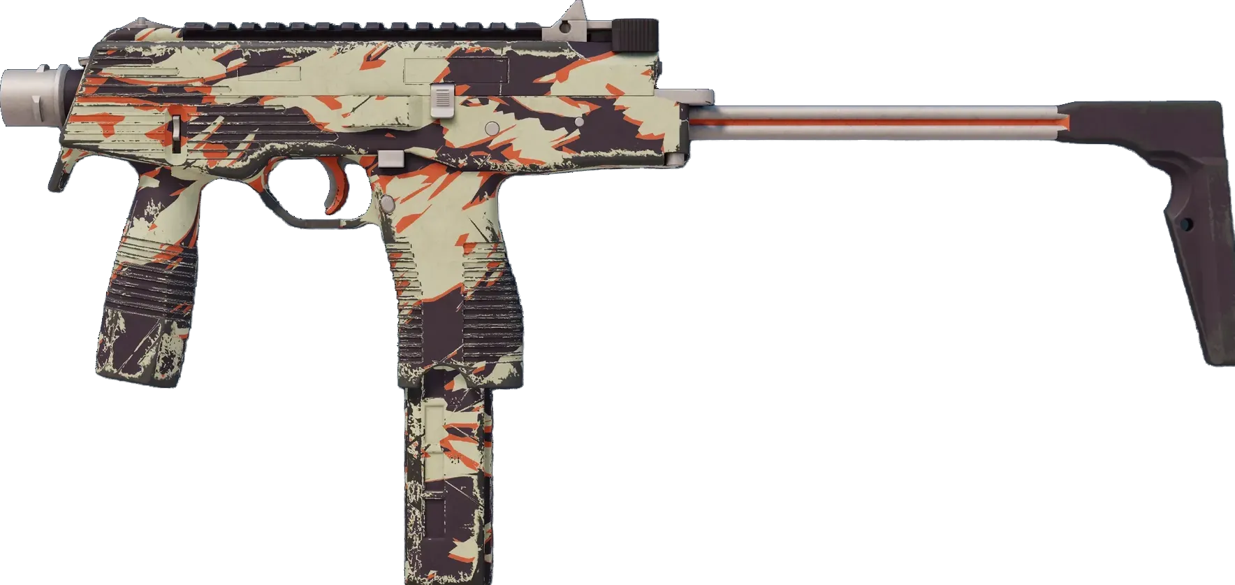Manufactured in Switzerland, the cutting-edge MP9 SMG is an ergonomic polymer weapon favored by private security firms. A multicolored tiger camo pattern has been applied. _Endangered no more_