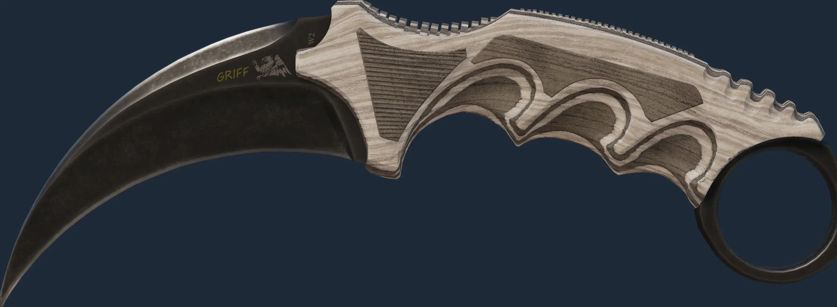 The Karambit | Black Laminate is a Covert grade skin for the Karambit in Counter-Strike 2. It features a Custom Paint Job finish and was designed by Valve.