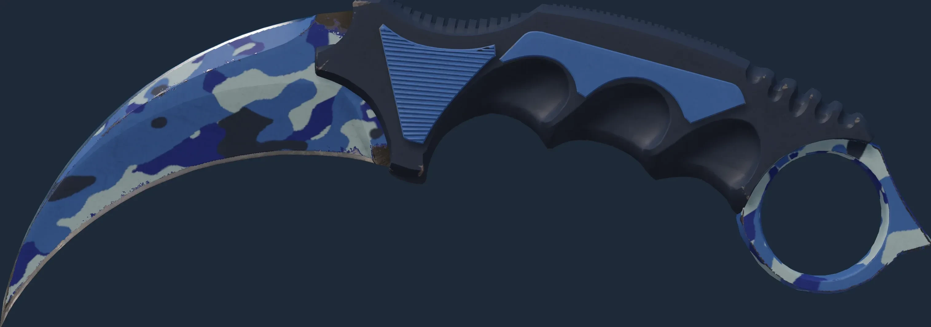 The Karambit | Bright Water is a Covert grade skin for the Karambit in Counter-Strike 2. It features a Custom Paint Job finish and was designed by Valve.