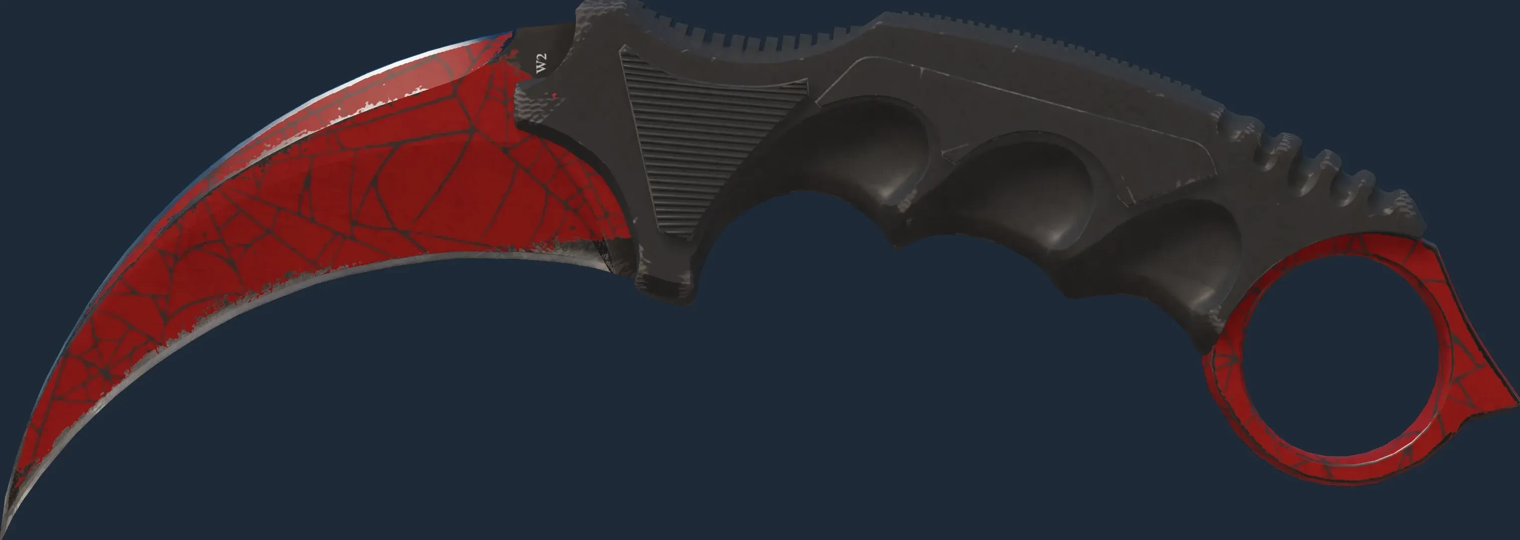 The Karambit | Crimson Web is a Covert grade skin for the Karambit in Counter-Strike 2. It features a Custom Paint Job finish and was designed by Valve.