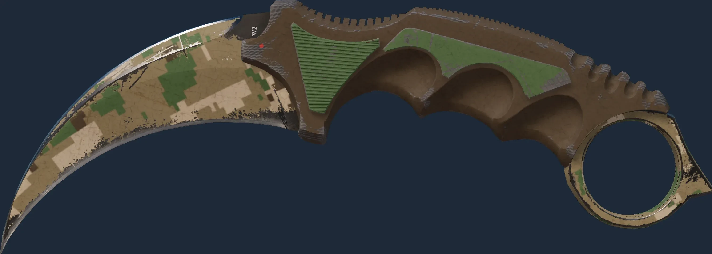 The Karambit | Forest Ddpat is a Covert grade skin for the Karambit in Counter-Strike 2. It features a Custom Paint Job finish and was designed by Valve.
