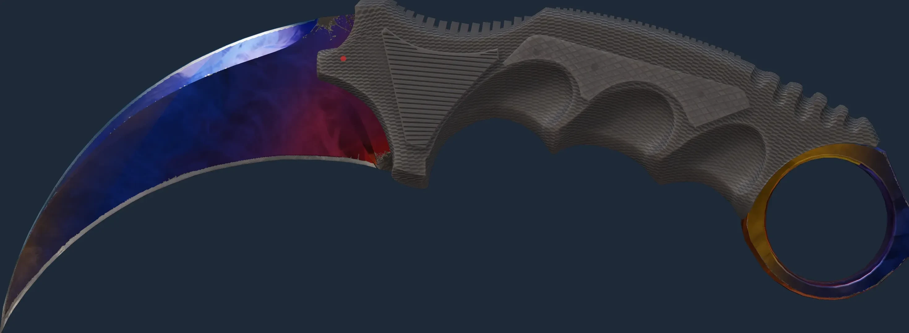 The Karambit | Marble Fade is a Covert grade skin for the Karambit in Counter-Strike 2. It features a Custom Paint Job finish and was designed by Valve.