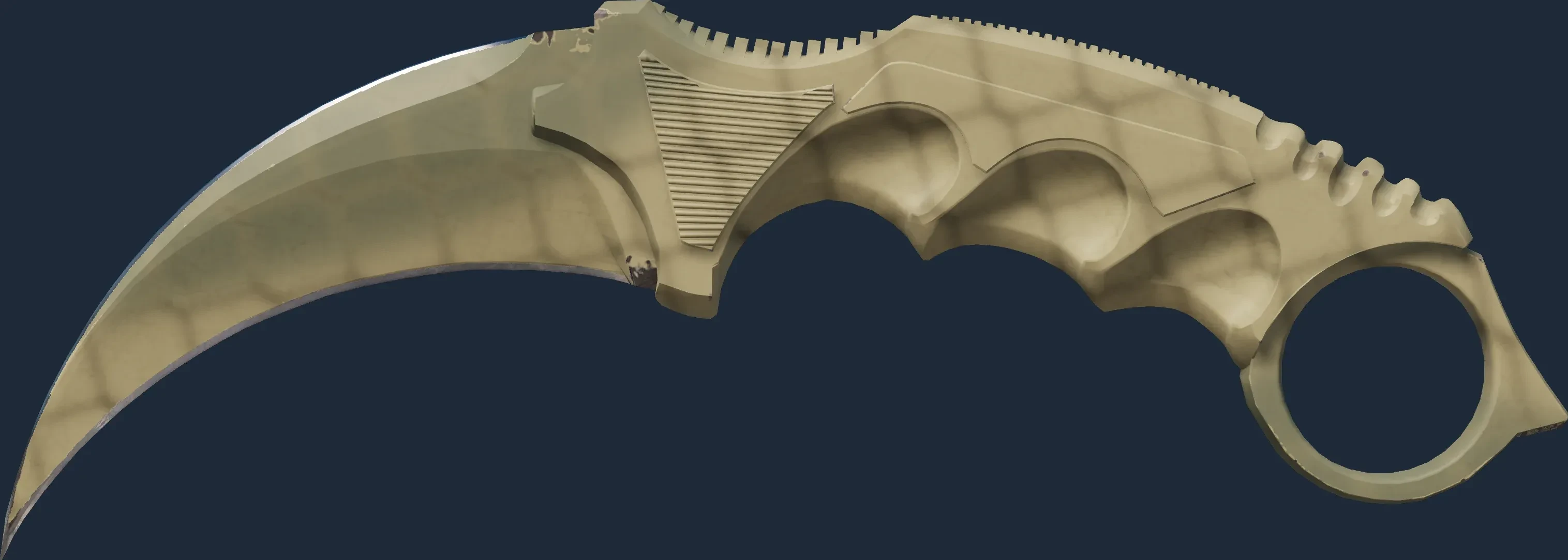 The Karambit | Safari Mesh is a Covert grade skin for the Karambit in Counter-Strike 2. It features a Custom Paint Job finish and was designed by Valve.
