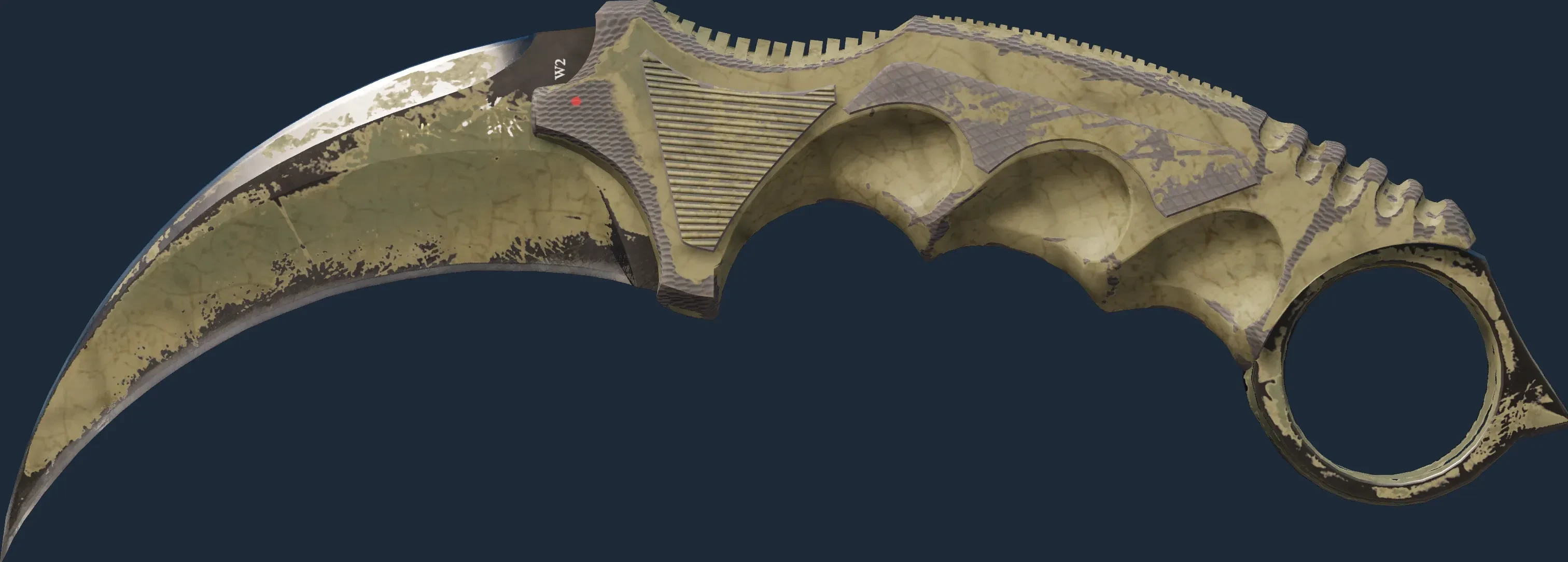 The Karambit | Safari Mesh is a Covert grade skin for the Karambit in Counter-Strike 2. It features a Custom Paint Job finish and was designed by Valve.