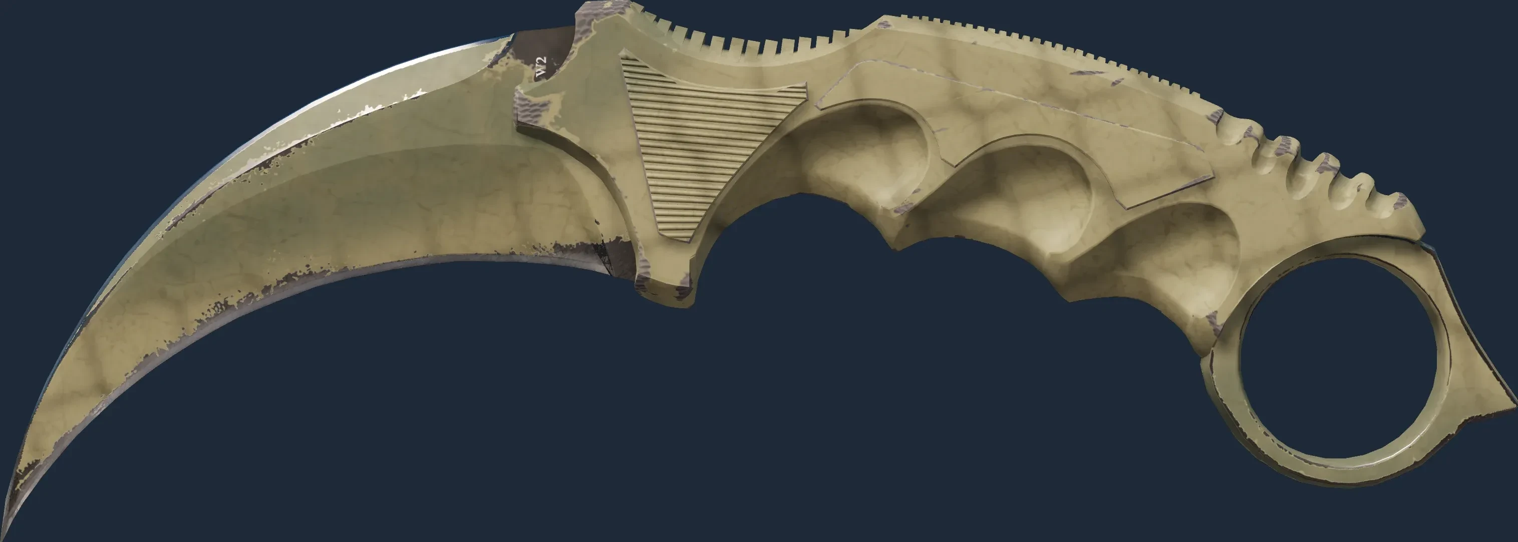 The Karambit | Safari Mesh is a Covert grade skin for the Karambit in Counter-Strike 2. It features a Custom Paint Job finish and was designed by Valve.