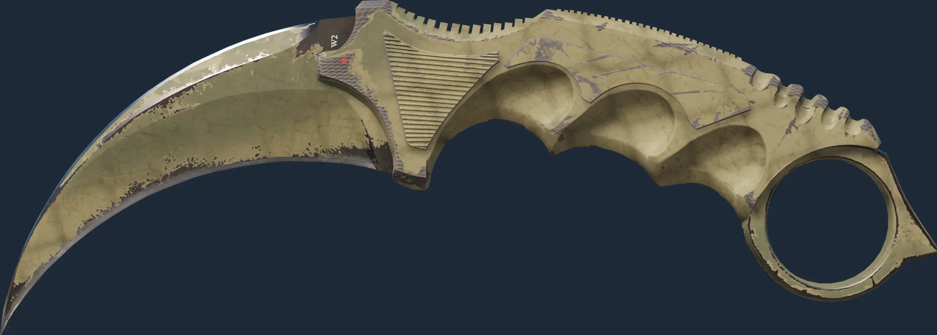 The Karambit | Safari Mesh is a Covert grade skin for the Karambit in Counter-Strike 2. It features a Custom Paint Job finish and was designed by Valve.
