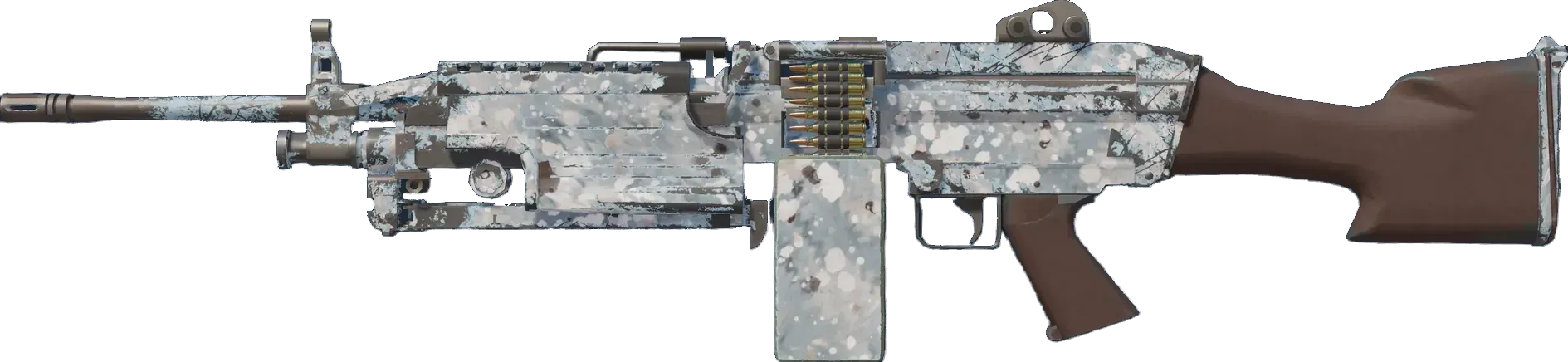 A strong open-area LMG, the M249 is the perfect choice for players willing to trade a slow fire rate for increased accuracy and a high ammo capacity. It has been painted in a marbleized pattern.