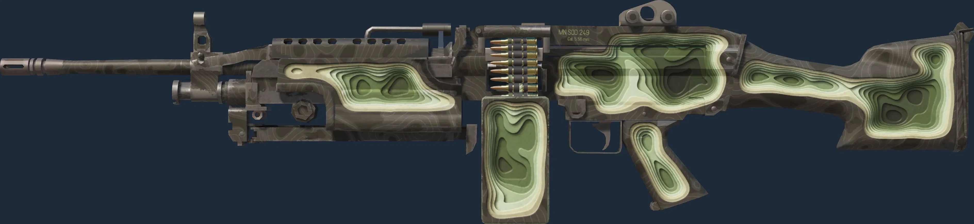 The M249 | Deep Relief is a Covert grade skin for the M249 in Counter-Strike 2. It features a Custom Paint Job finish and was designed by VisHomin.