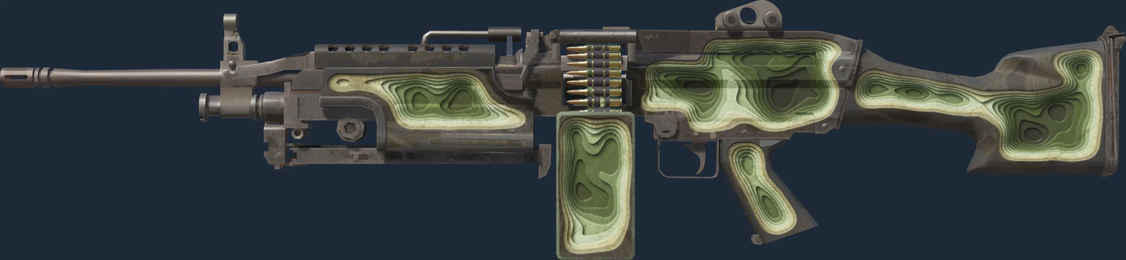 The M249 | Deep Relief is a Covert grade skin for the M249 in Counter-Strike 2. It features a Custom Paint Job finish and was designed by VisHomin.