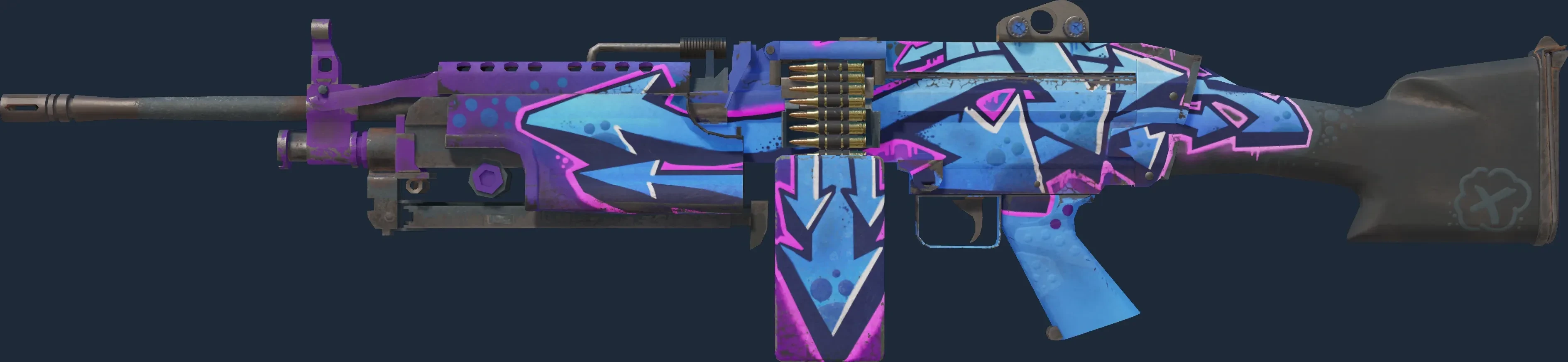 The M249 | Downtown is a Covert grade skin for the M249 in Counter-Strike 2. It features a Custom Paint Job finish and was designed by The Honey Badger.