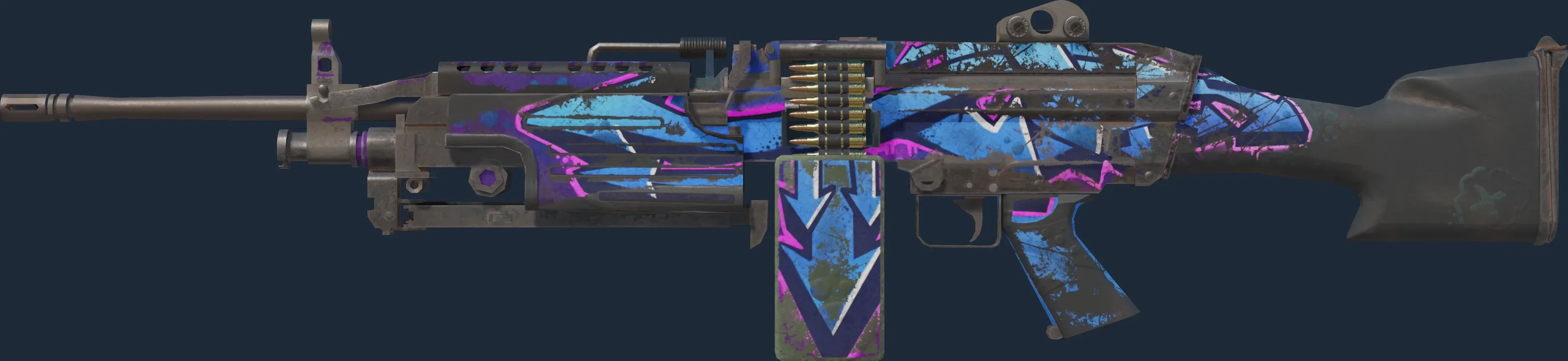The M249 | Downtown is a Covert grade skin for the M249 in Counter-Strike 2. It features a Custom Paint Job finish and was designed by The Honey Badger.