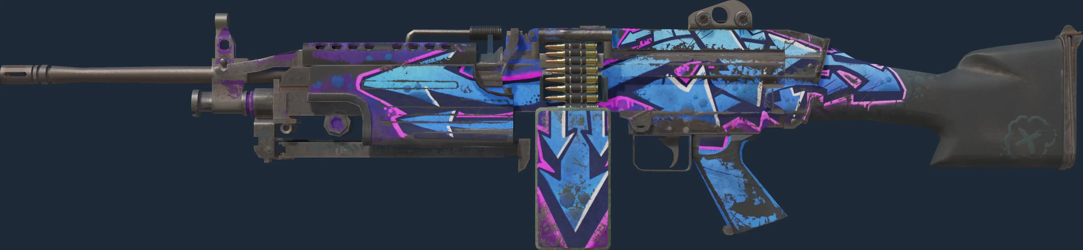 The M249 | Downtown is a Covert grade skin for the M249 in Counter-Strike 2. It features a Custom Paint Job finish and was designed by The Honey Badger.
