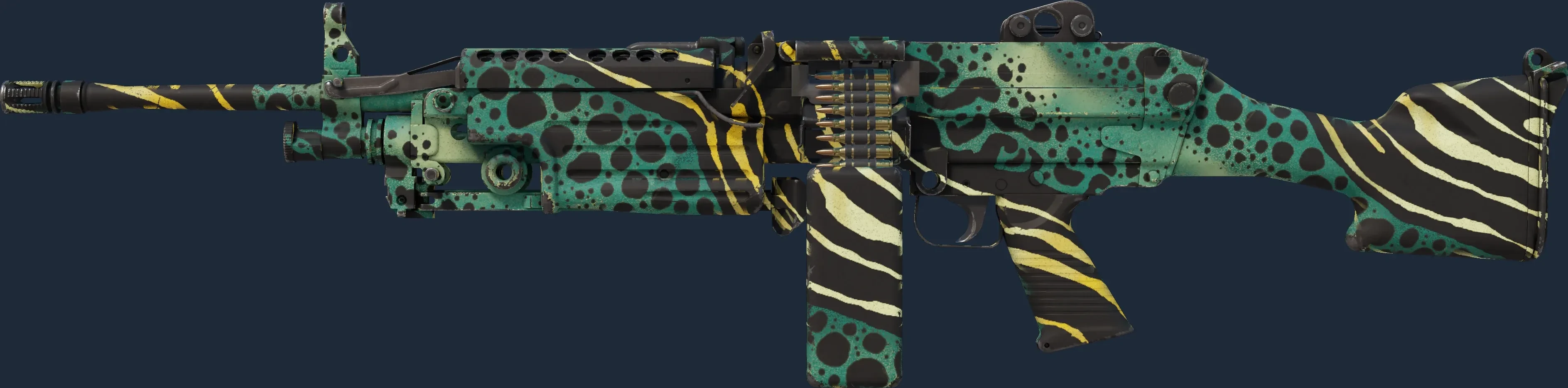 The M249 | Emerald Poison Dart is a Covert grade skin for the M249 in Counter-Strike 2. It features a Custom Paint Job finish and was designed by PTP.